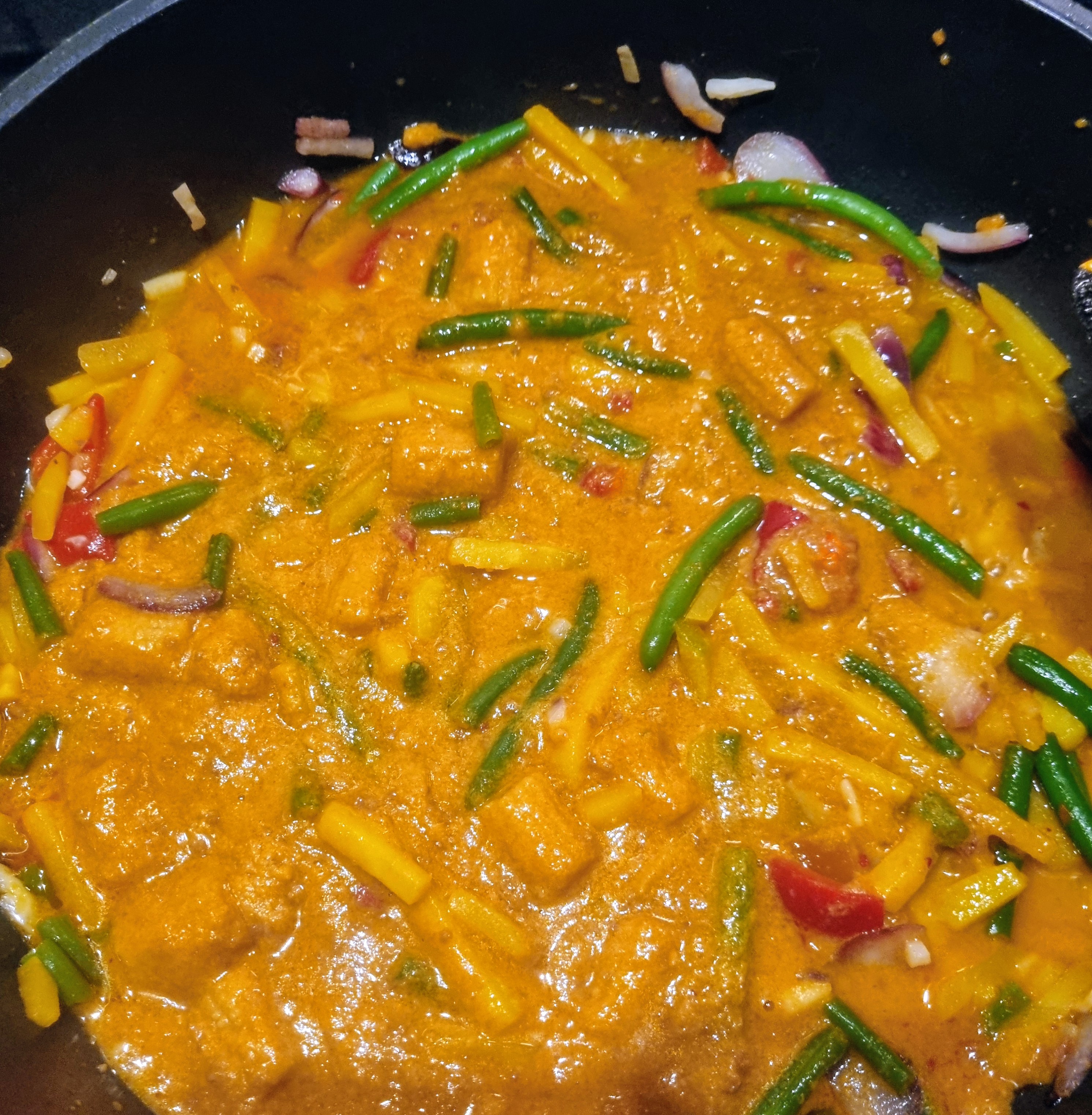 Hetta upp olja i en stekpanna och stek grönsakerna i några minuter så de blir glansiga