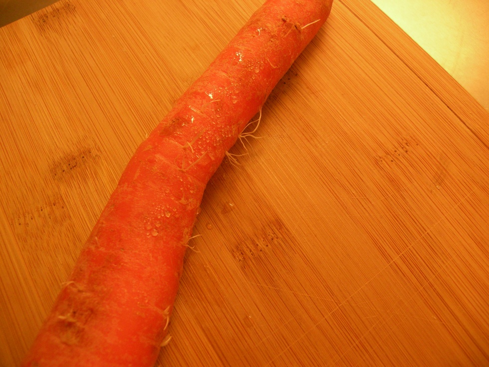 Det är ganska konstigt egentligen. Den här moroten skördades säkert för ganska länge sen men nu när det börjar våras så skickar den ut små groddar över hela sin morotskropp. Det är rätt häftigt. Den känner att det är dags att föröka sig kanske, och kanske vill den hoppa ner i jorden igen till sina morotskompisar. Men se det går inte för sig för hon är numera en uppäten morot.