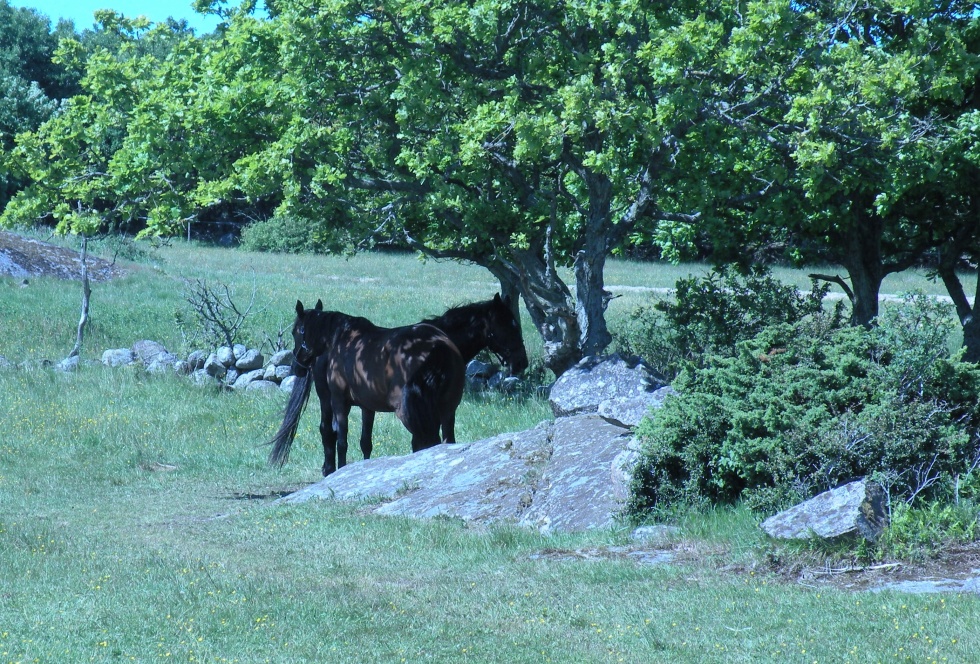 Vi har hela sommaren framför oss när djuren kan gå ute och äta sig mätta av allt grönt, frodigt gräs men tänk så skönt att veta att en höskörd redan är bärgad så att det finns lite att bjuda på när gräset vissnat ner till hösten. Och förhoppningsvis så kan det bli en skörd till. När höfläkten går igång så väsnas den visserligen lite, men det är ett skönt ljud för då vet man att sommaren är här på riktigt! Och här är några som ska smaska på höet till hösten.