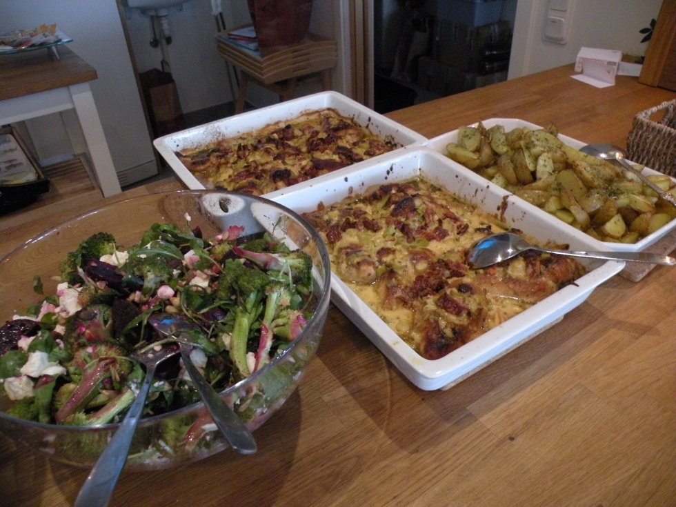 Nu ska bara de sista rätterna ställas i ordning och vinet ska hällas upp och sen är vi klara för en trevlig sittning.