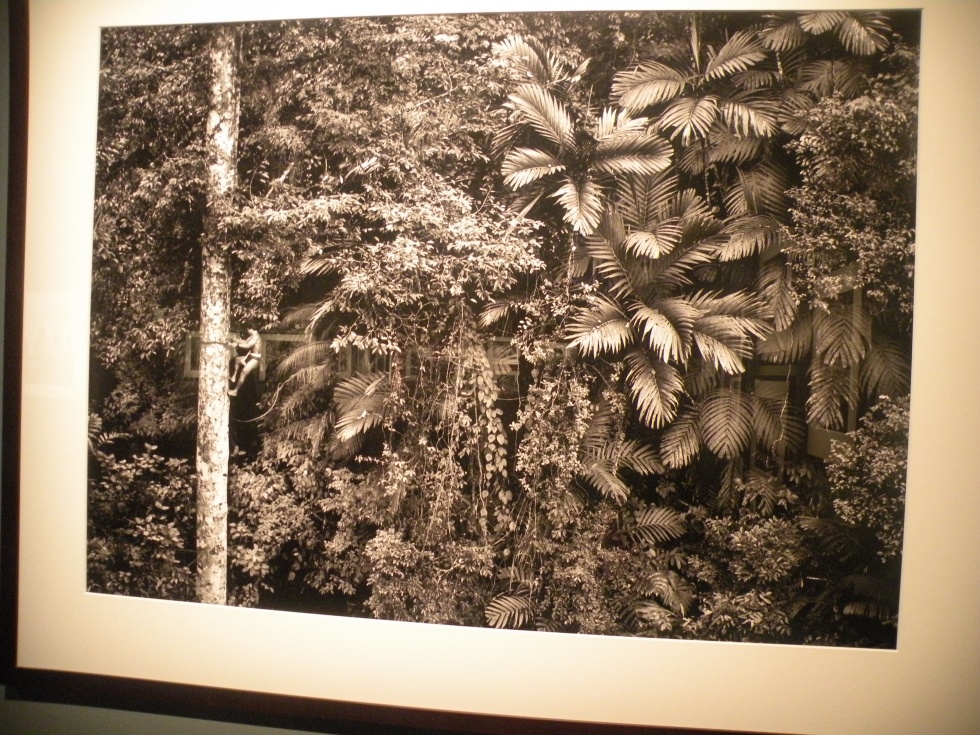 Ser du mannen till vänster på bilden? Han som klättrar på den breda, raka trädstammen. Visst sätter det fart på fantasin! Undrar hur högt han har klättrat och vad han ska hämta. Har han ett ärende uppe i trädet eller roar han sig bara? Och kolla in de gigantiska bladen i grenverket. Underbart fascinerande foto tycker jag. Och var stod Salgado när han fotade? Spännande!