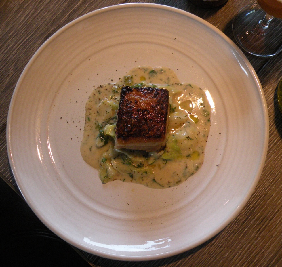 Den stuvade spetskålen var så len och mild men ändå smakrik med en touch av senap. Fläsksidan var perfekt tillagad, lagom salt, mör och vackert rosa och kombinationen av kålen och köttet gjorde hela rätten till en härlig matupplevelse.