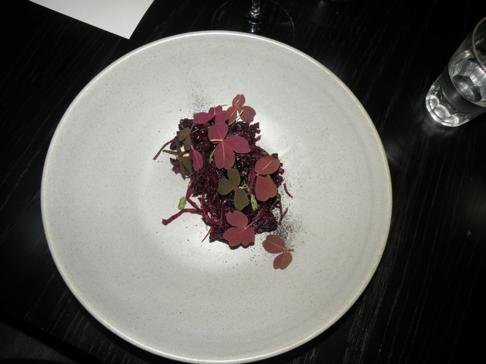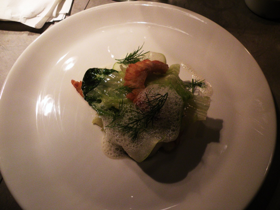 Vi satte oss vid vårt bord, beställde in en sex-rättersmeny och blev serverade de mest fantastiska rätter. En favorit var denna tjusiga tallrik som kom in med ljuvliga smaker från natur och trädgård. Smakerna var helt amazing. Det var också ett plus i kanten att vi kunde dela på ett vinpaket med utvalda viner till rätterna.