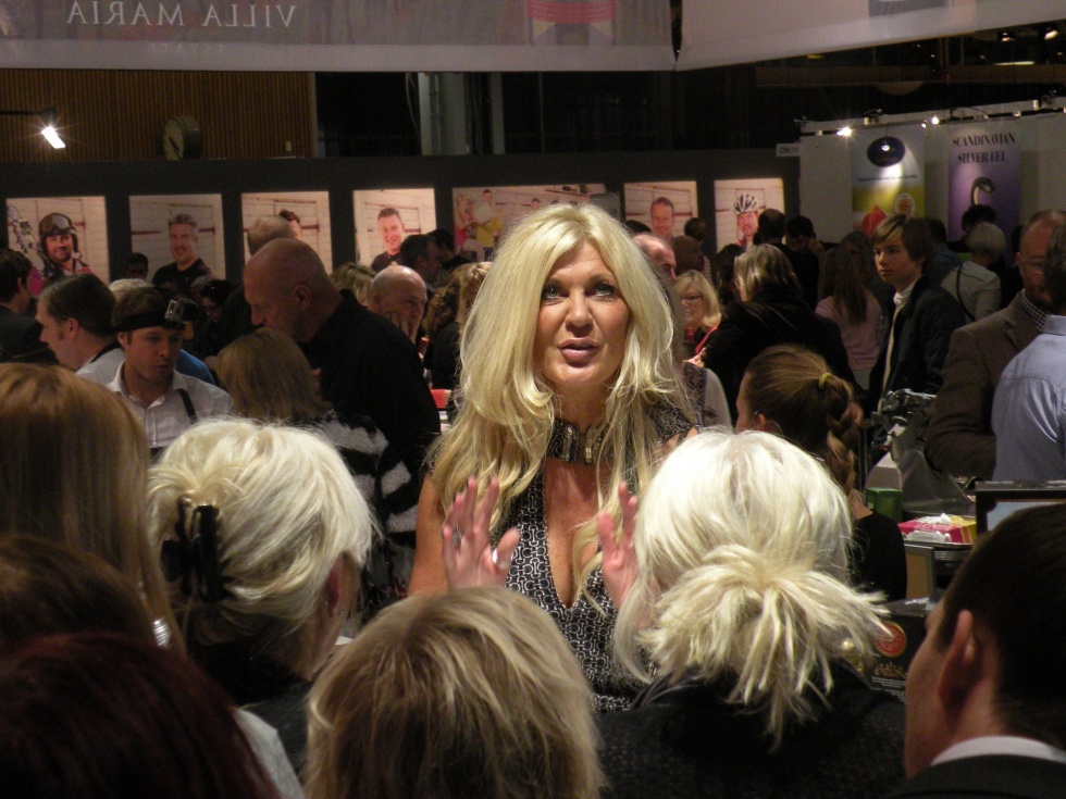 När lördagsförmiddagen kom så tog vi det lite lugnt, filosoferade lite och vilade en stund till. Sen stack vi till Älvsjö och Mitt Kök-mässan och minglade runt. Där var det full fart. I en av champagne-montrarna uppträdde Maria Montazami bland rosa disco-bollar.