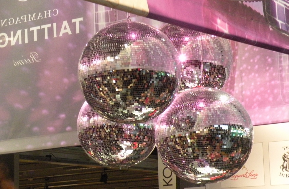 Jag gillar ju både rosa och glitter och det gör kanske Maria M också. I alla fall så såg det ut så här i den montern Maria stod i. Det var Taittingers monter och man kan gissa att det gjordes reklam för roséchampagne