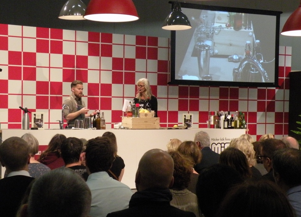 När vi gick runt i lokalerna på lördagseftermiddagen så hade mässan redan pågått i nästan tre dygn så man kan gissa att det mesta redan hade hänt. Men det fanns fortfarande många intressanta föreläsningar att delta i, en av dem var en drinkskola i Allt Om Mat’s regi, jag tror att Jens Dolk fanns med nånstans bland drink-recepten. 🙂