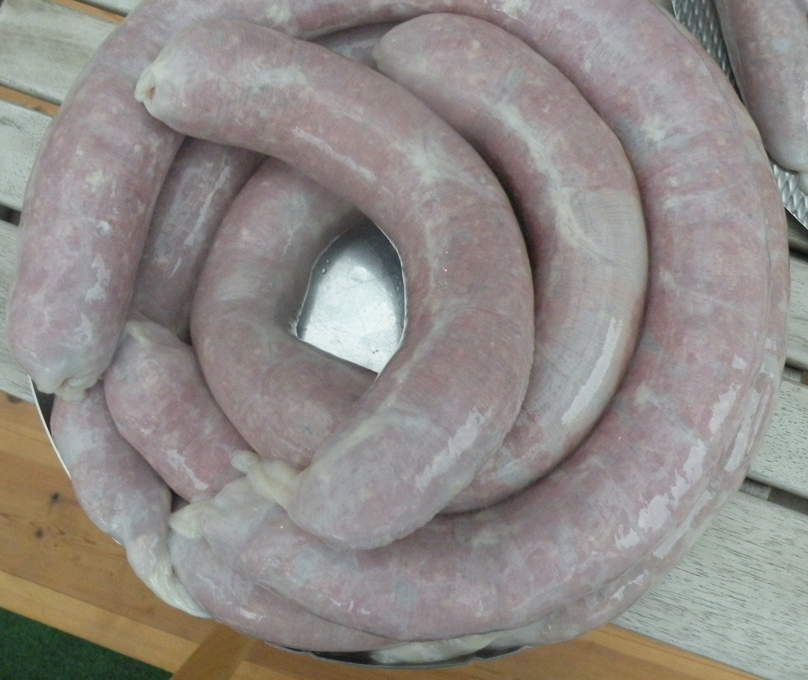 Man behöver inte knyta ändarna på denna korven, bara spara någon cm tomt fjälster i varje ända. Jag fryser in korvarna och sen rivstartar vi julhelgen med julkorv, potatismos, rödkål, grönkål och sötstark senap på kvällen den 23/12. På julafton får korven vara med på julbordet med dopp och andra godsaker, mer om detta vid ett senare tillfälle.