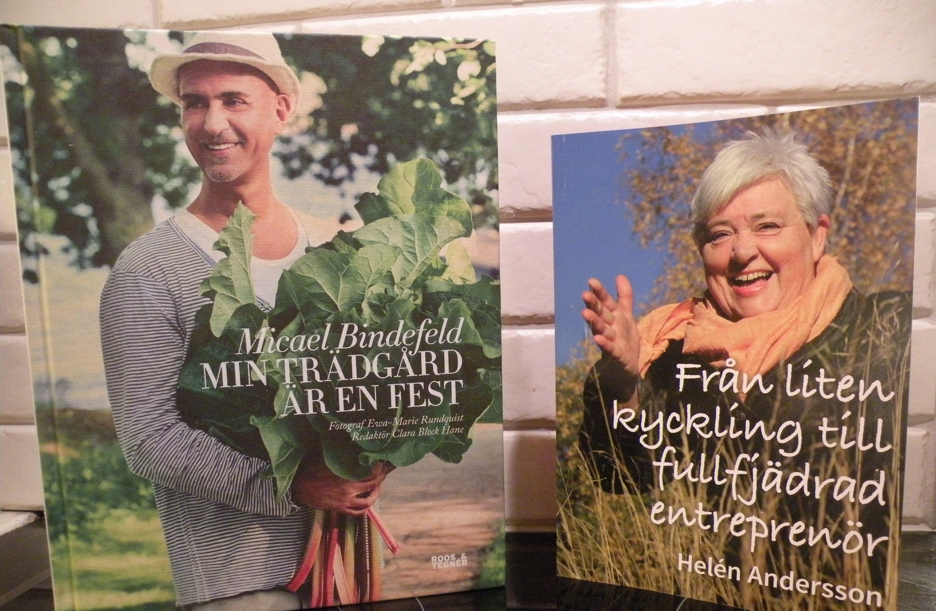 Signerade böcker. En av Michael Bindefelt och två av Helén Andersson.