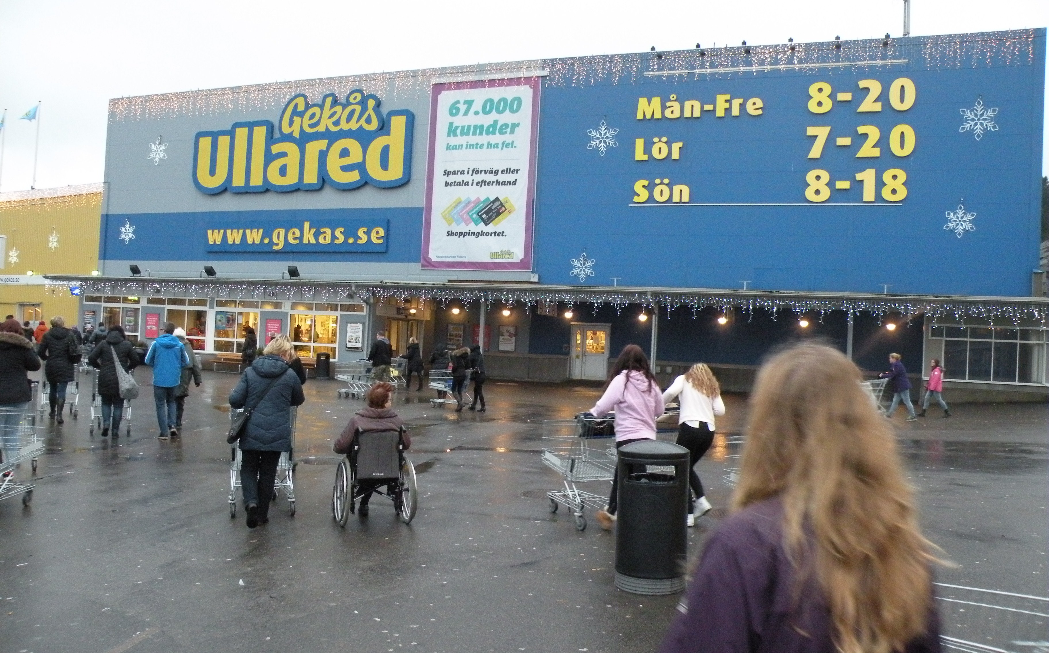 För ett antal år sen så var det en sanning att man kunde åka till Ullared dagarna före jul och att det då var helt tomt på folk i Varuhuset. Det var sant en gång i tiden men inte längre för något hände och statistiken vände radikalt. Kanske beror det på att det förr ansågs lite fult att ha köpt sin kläder billigt i lågprisladan men nu har ju Ge-Kås och Ullared fått lite mer status, tv-kändisar och allt som de är nuförtiden. Nu ska man veta att det är trångt i butiken strax innan jul och om man vill äntra Ge-Kås i dessa julrusch-dagar så är det bäst att vara beväpnad med tålamod och att hålla hårt i kundvagnen.