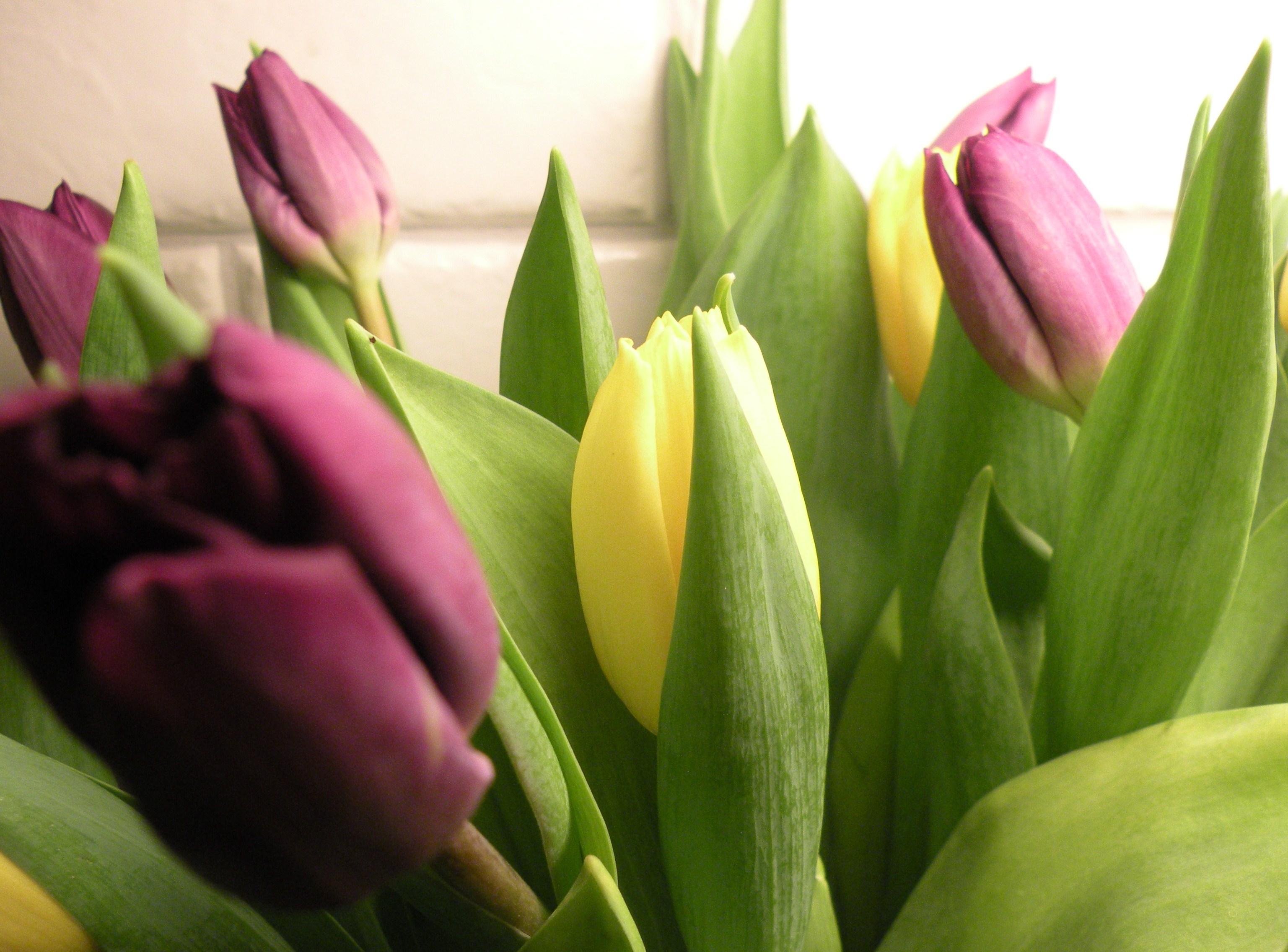 På jobbet var det födelsedagsfika och vi är två stycken av fem möjliga som firar födelsedag idag denna sista skälvande dagen av mars månad, vårmånaden. Snön, regnet och haglet bestämde sig för att fira oss och det var ju föga smickrande men ändå en naturlig väderbild så här i slutet av mars. När jag kom hem så fick jag en härlig bukett av dessa ljuvliga tulpaner.