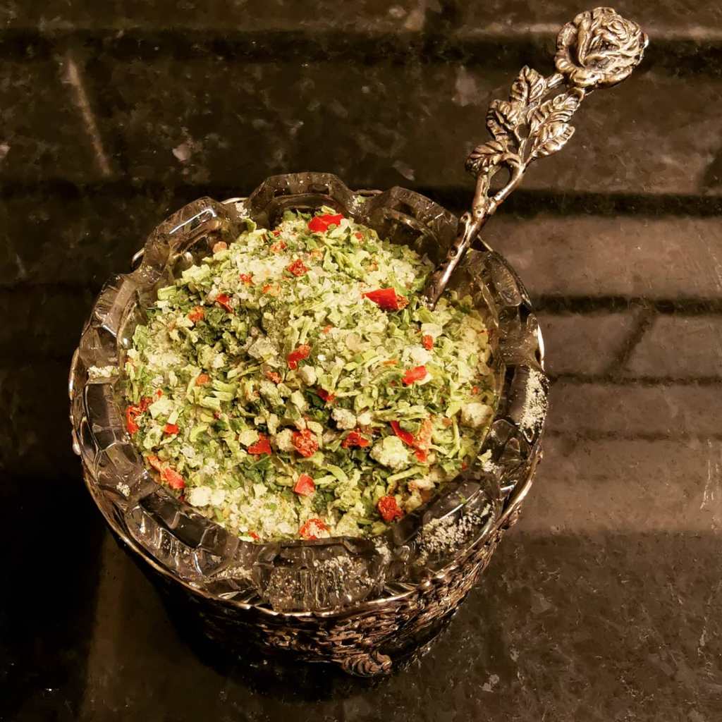 Jag testade att smaksätta dessa grönkålschips med lite sötma och juliga kryddor. Detta använde jag: