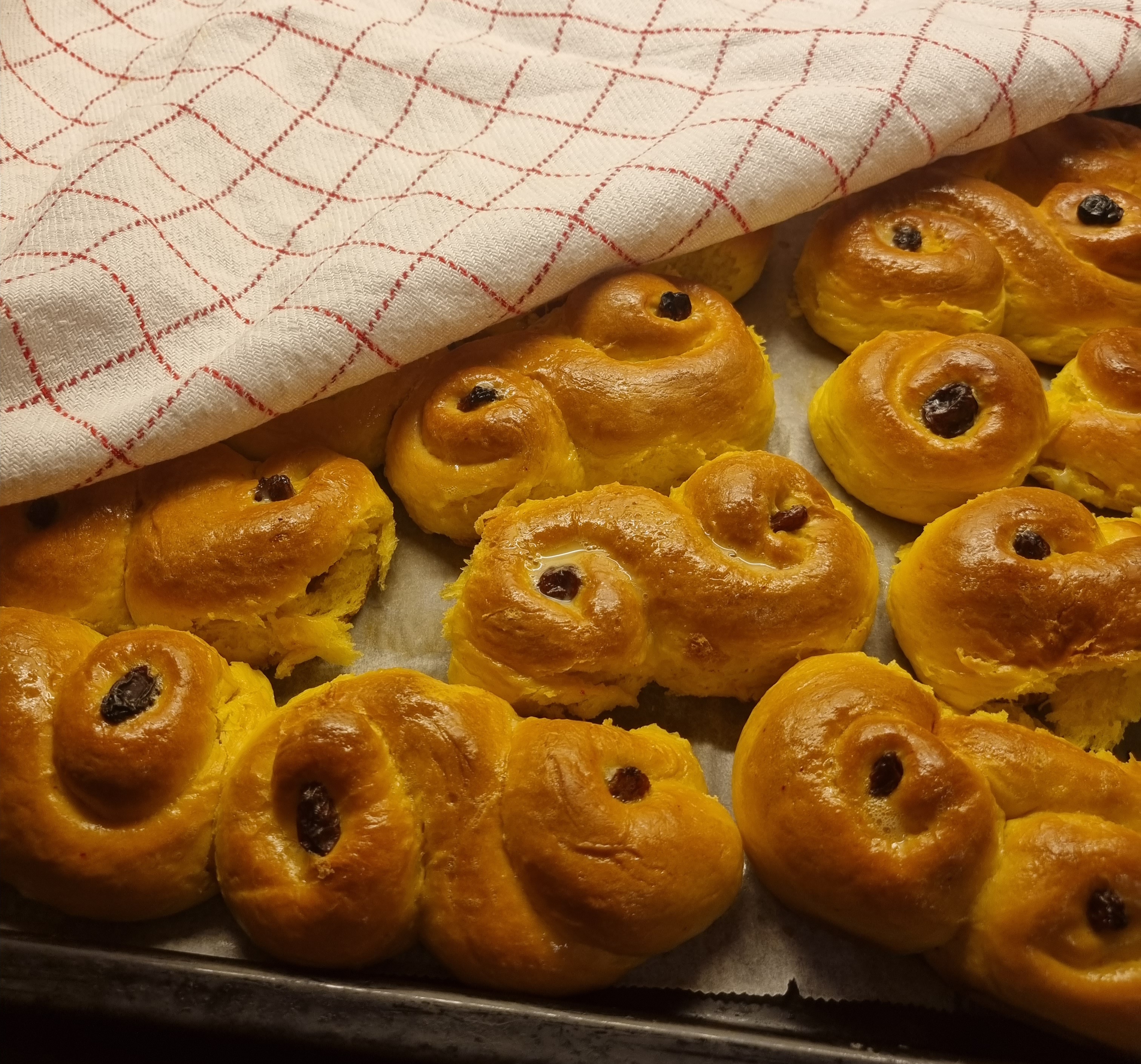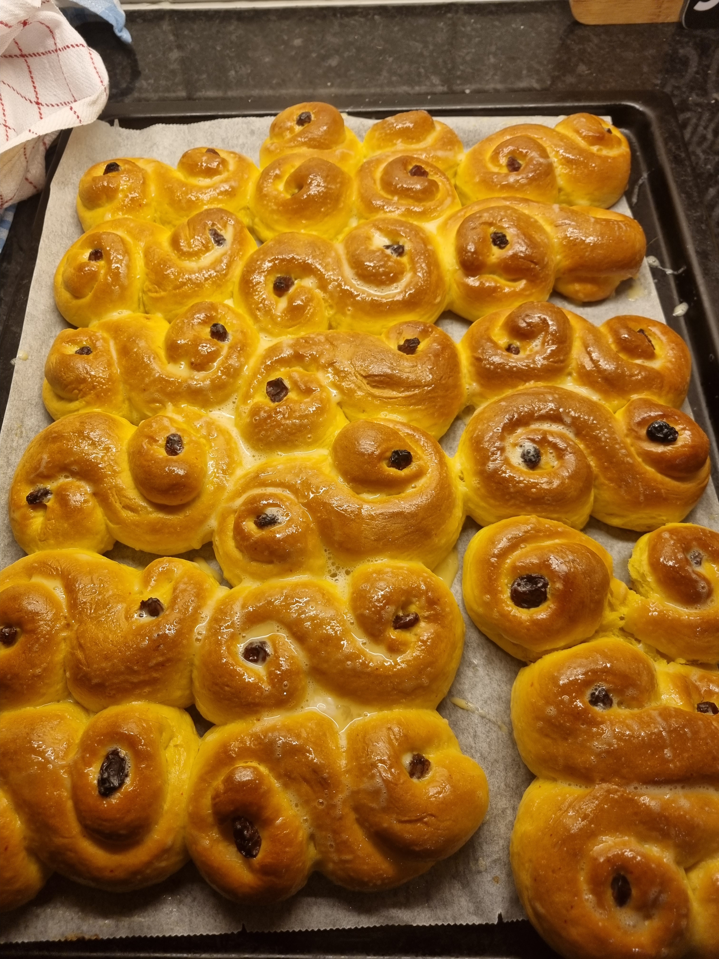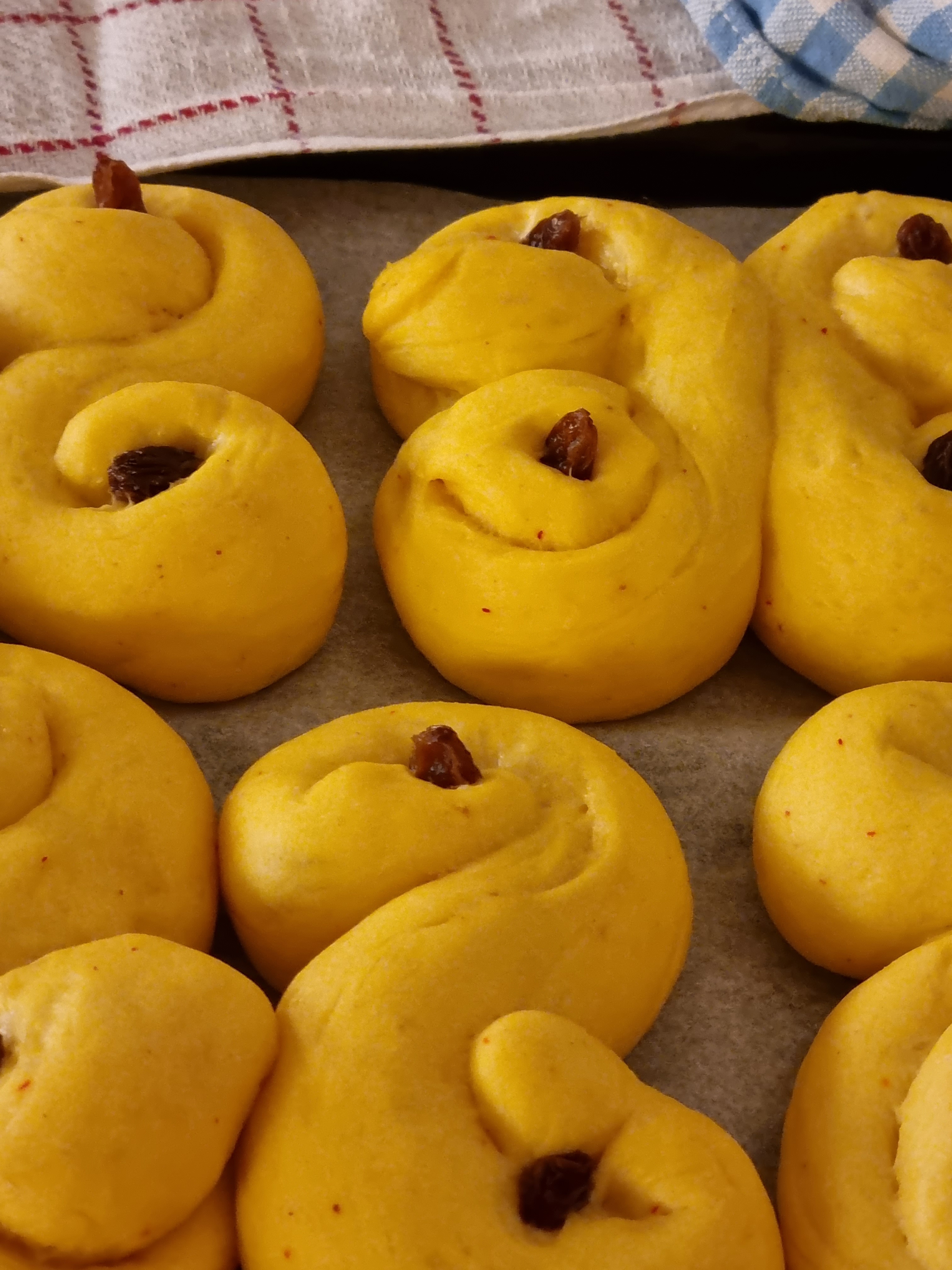 Blötlägg också russinen som ska vara till dekoration innan sista jäsningen så de inte torkar ut degen