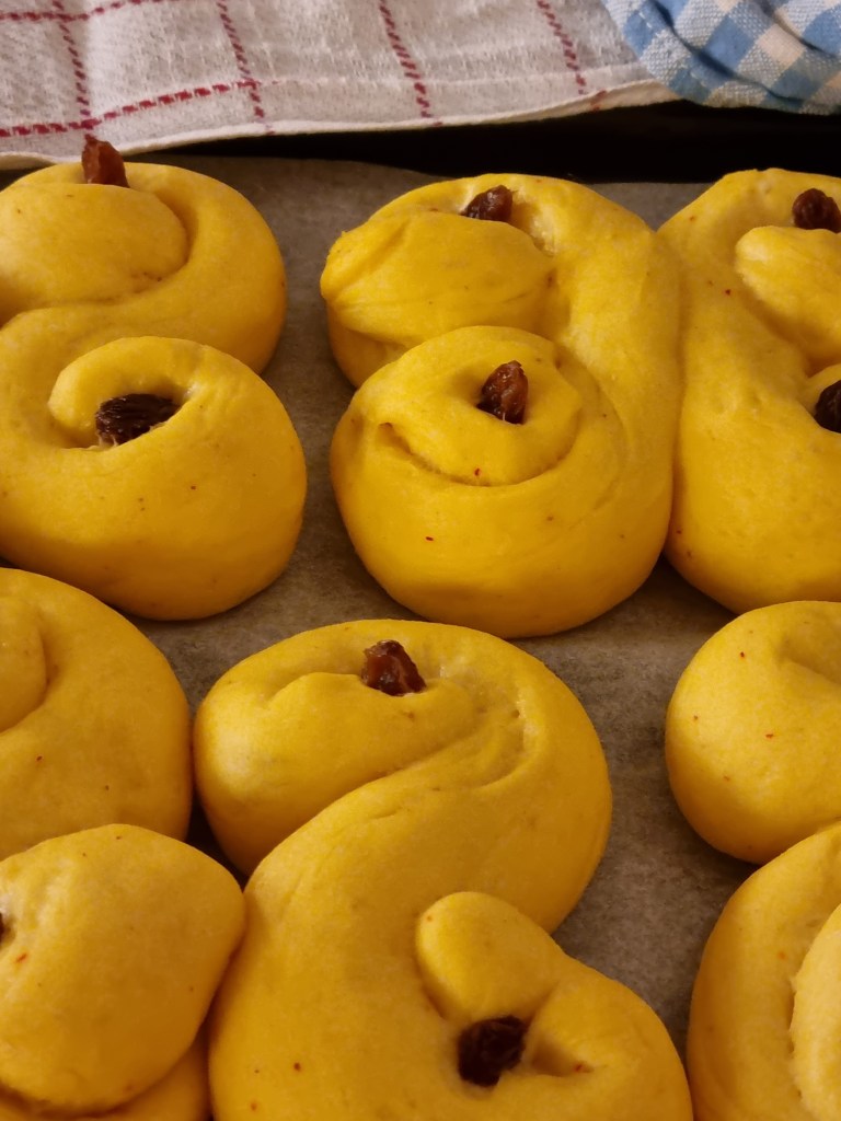 Forma till lussebullar och tryck i blötlagda russin