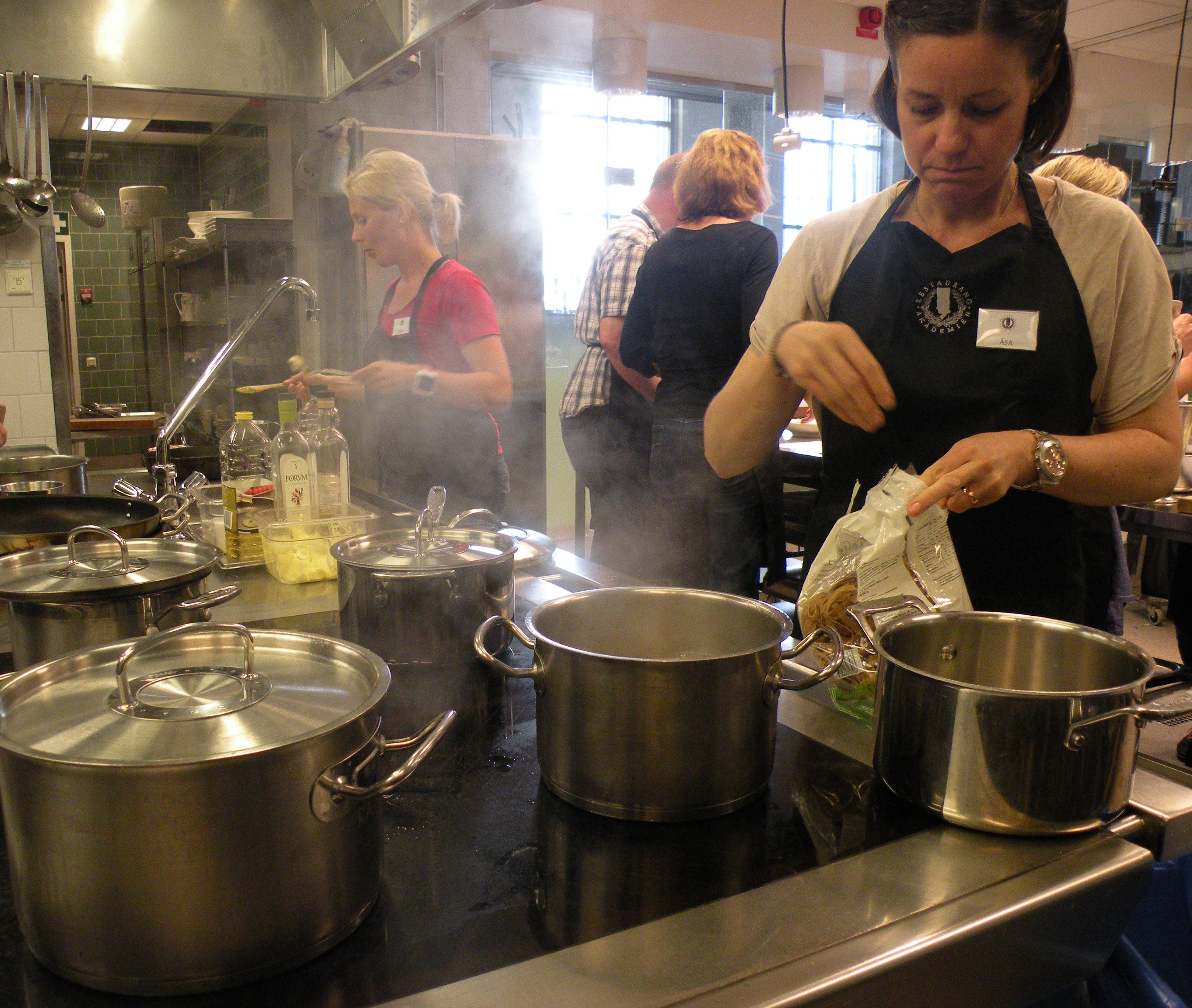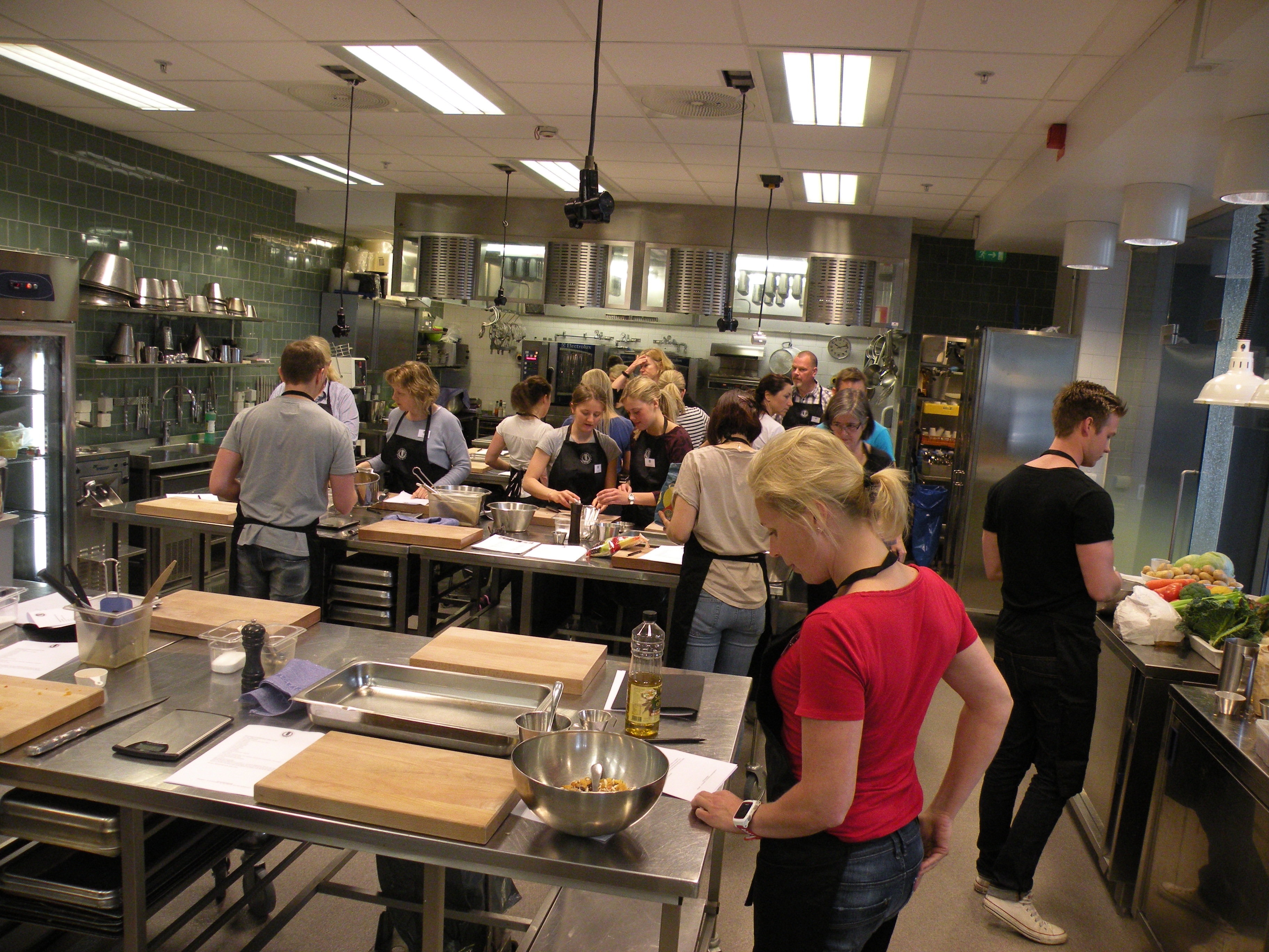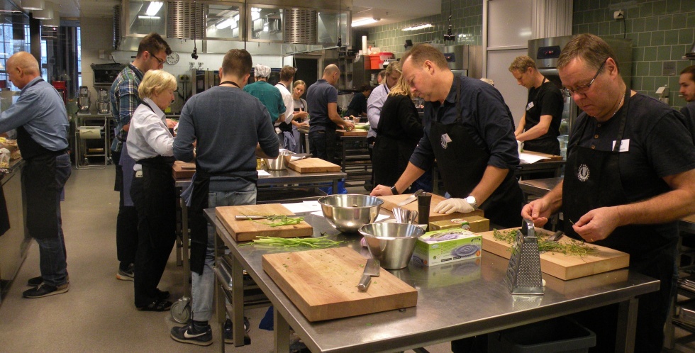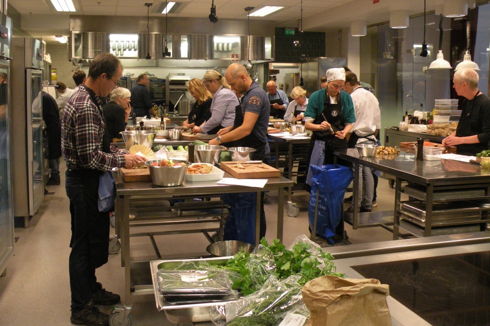 Det jobbades intensivt och intresserat i ett av mina favoritkök, nämligen i det stora fina köket på Restaurangakademien på Rökerigatan i Stockholm.