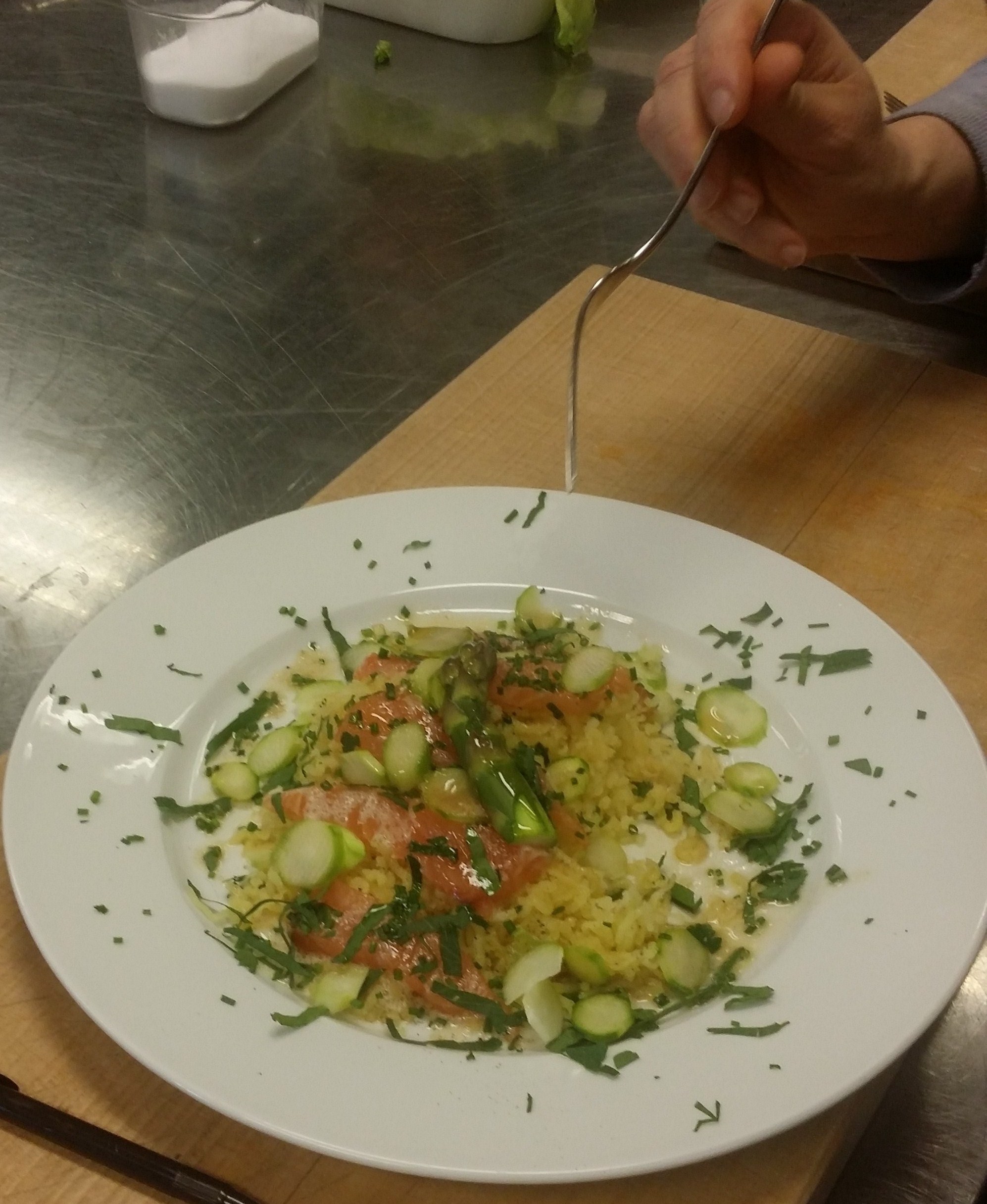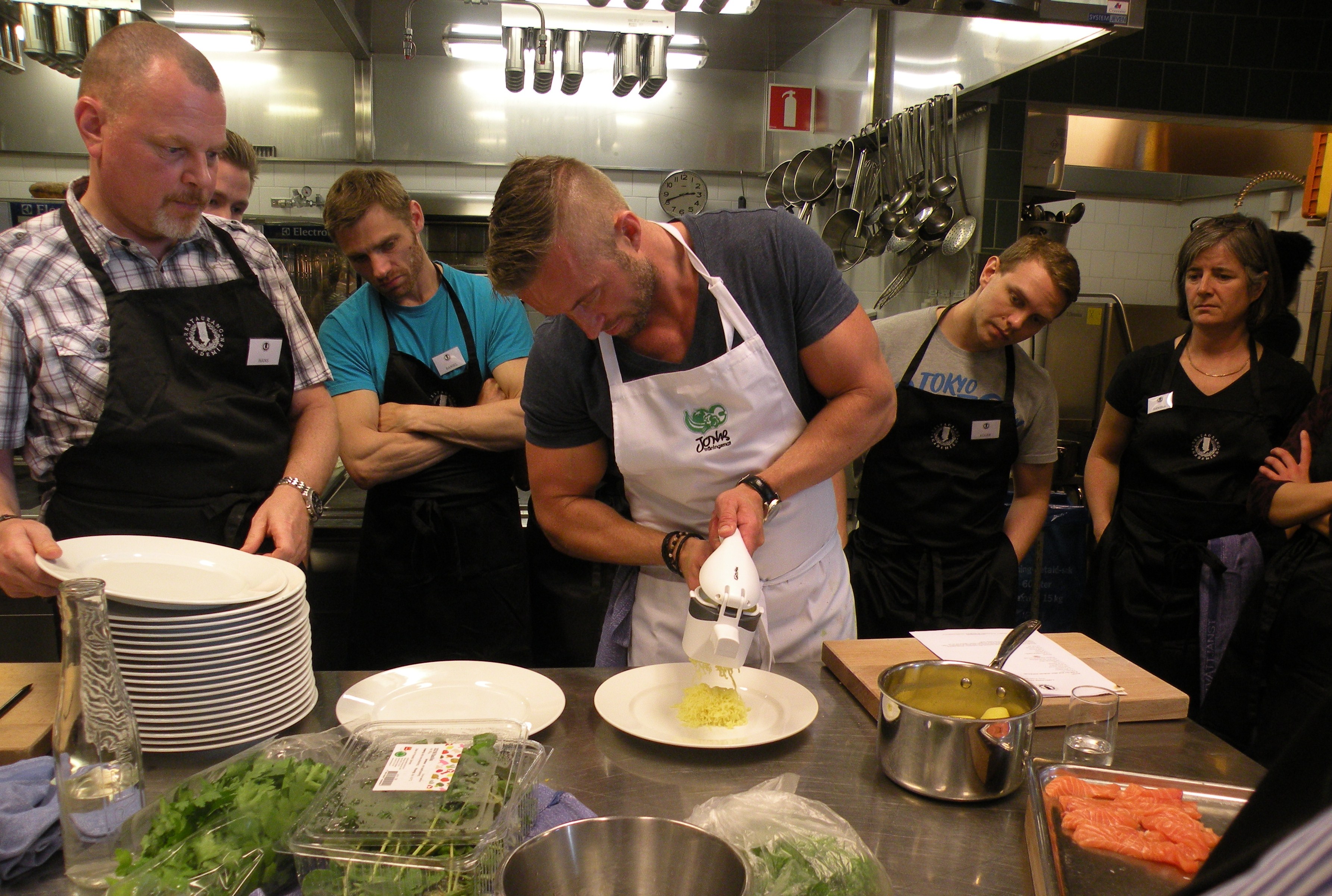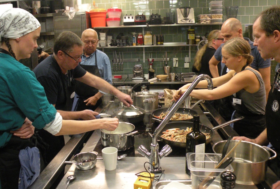 Det jobbades intensivt och intresserat i ett av mina favoritkök, nämligen i det stora fina köket på Restaurangakademien på Rökerigatan i Stockholm.