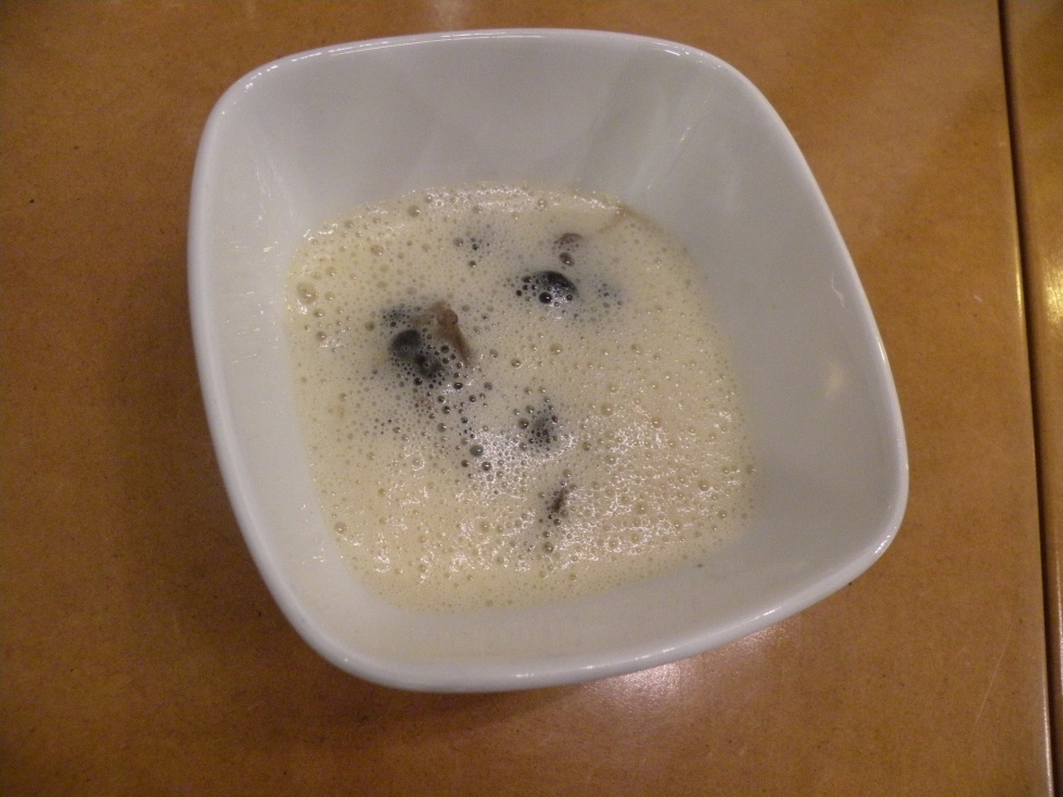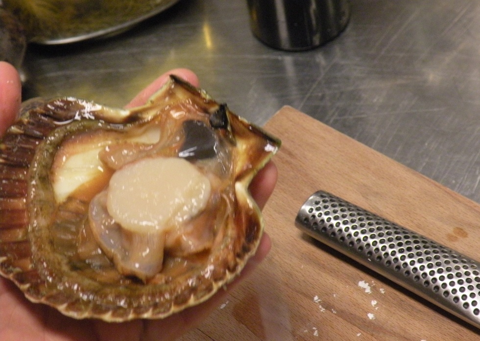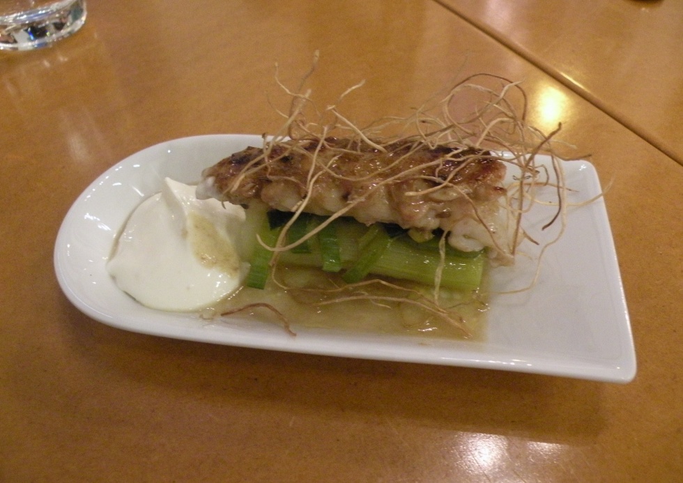 Yuzu hade jag inte hört talas om förut men det är en citrusfrukt och idag användes juicen av frukten till glass och gelé. Man gjorde också en lakritscrumble till denna desserten och ett frasigt mjölkskinn som dekoration och smakupplevelse.