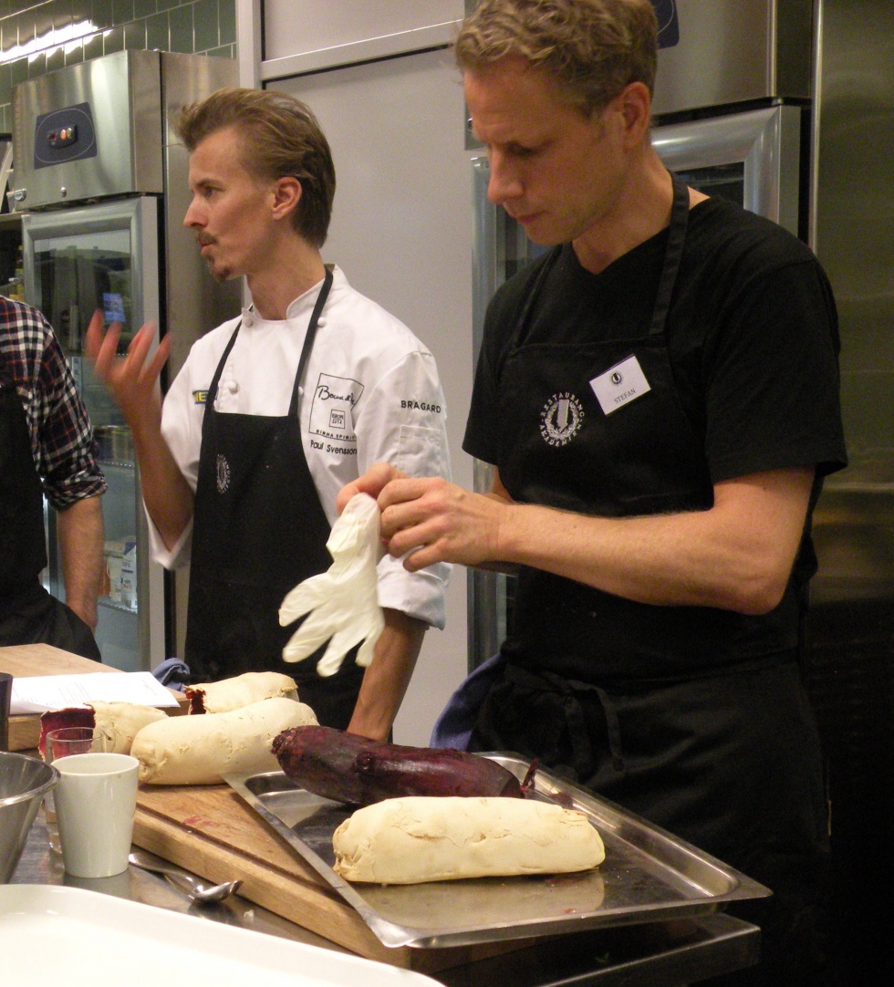 Deltagarna, som är konditorer eller kockar på olika restauranger i Sverige jobbade två och två med sina desserter. I början är alla lite försiktiga men allt eftersom dagen går och arbetet flyter på så blir det fler och fler samtal och diskussioner kring smaker och tekniker. Det är roligt!