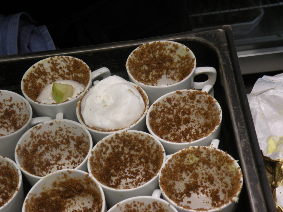 Skyrmousse och gurksorbet med havregrynscrumble. Lika gott som snyggt!