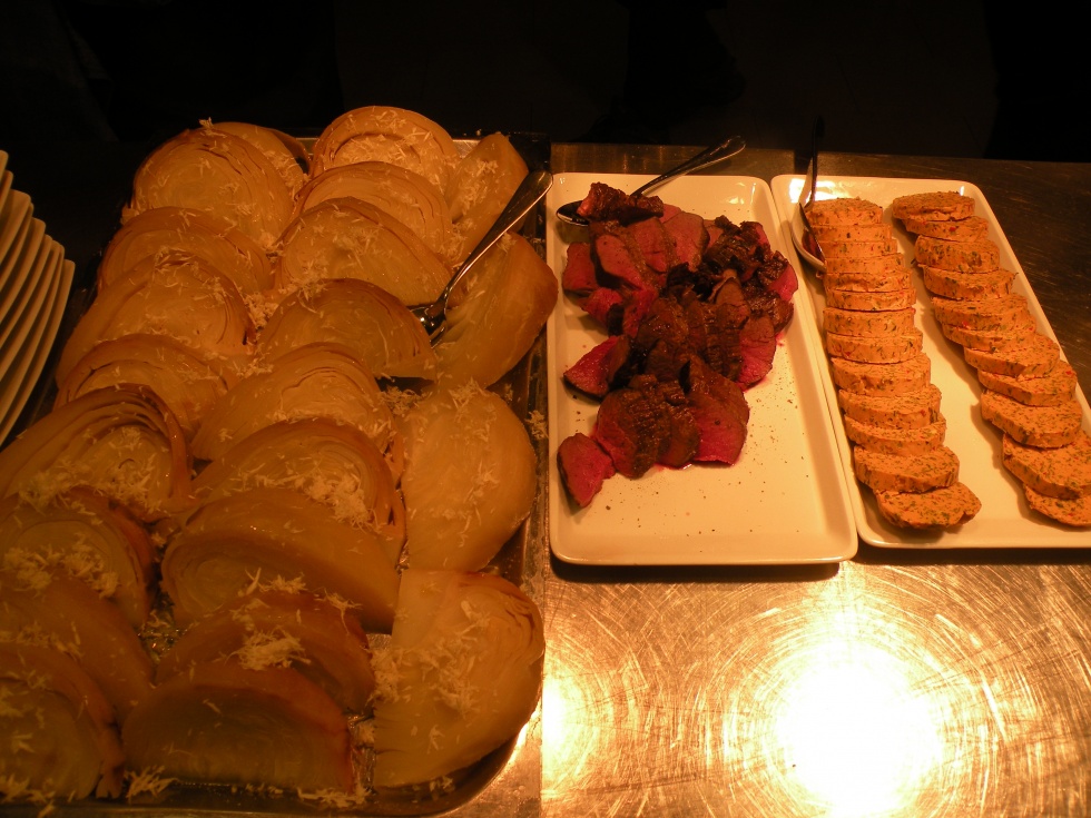 Oj, det här blev en favorit! När jag gick förbi stationen där detta skapades så blev jag först förvånad över att känna currydoften. Jag var såklart tvungen att stanna och titta närmare. Det gjordes en popcornnougatine! Sockret smältes tills det blev gyllenbrunt och hälldes sen ut på en silikonmatta där det fick stelna. Sen mixades sockret med popcorn, curry och maltosec. Gruppen karamelliserade sen vit choklad och gjorde en banan- & vit chokladparfait samt en popcornglass. Lite malt och lakritspulver ströddes sen över härligheten och smaksensationen var ett faktum!