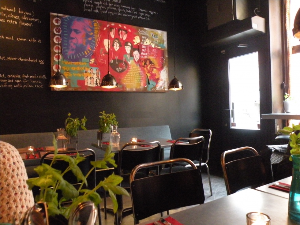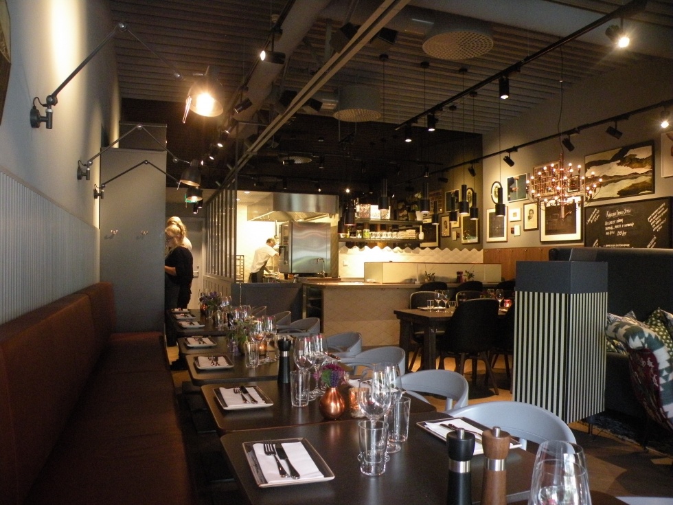 Kolla in påsen som bröd och smör är upplagt i. Snygg detalj och vet ni vad? Den är gjord av tvättbart papper! Det är roligt med udda detaljer och den här var snygg också. Här är ännu en interiörbild från Yolo medan vi väntar på maten.