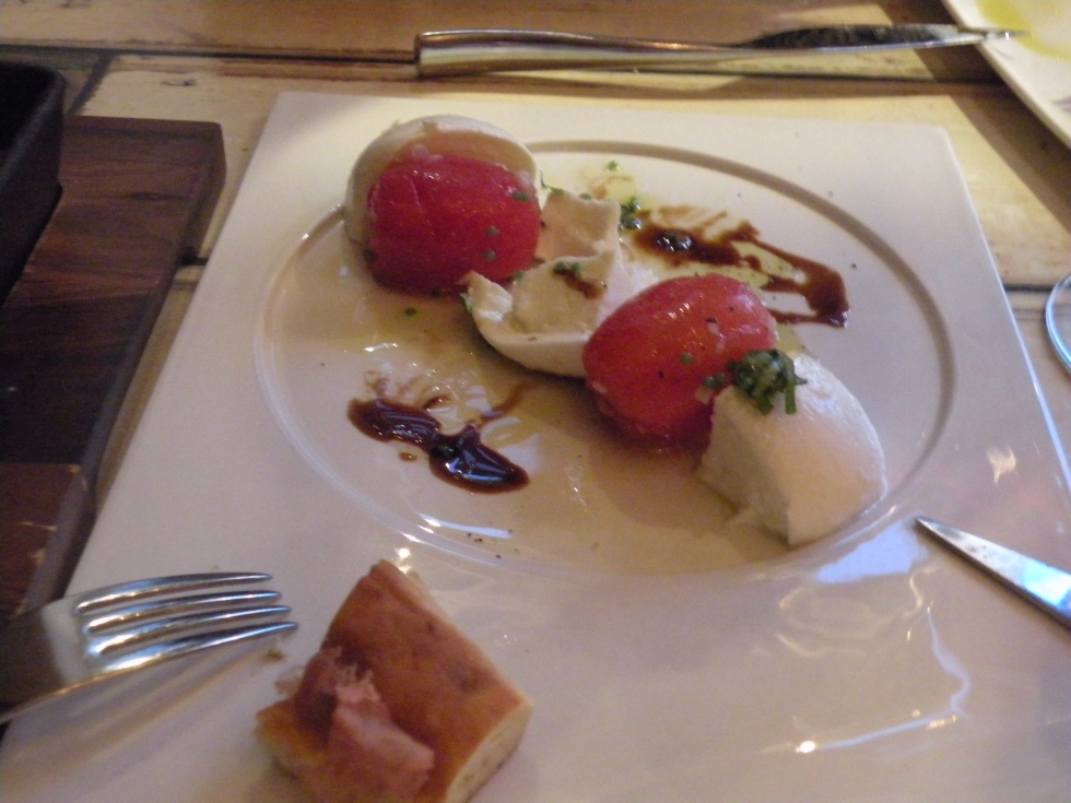 Ännu en god och vällagad rätt serverades och den lilla tomatsalladen var ett friskt tillbehör. Jag smakade inte på denna rätten men Henrik var lyrisk över köttet och smakerna. Enkla, rena och klassiska.