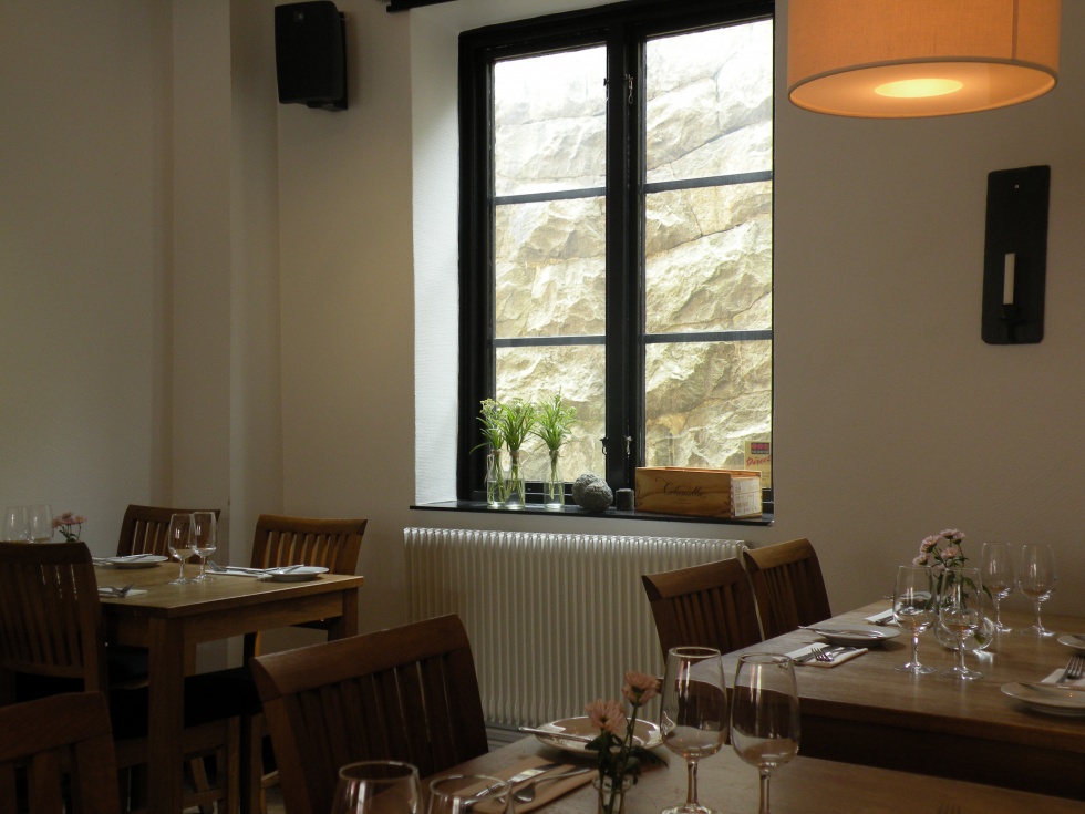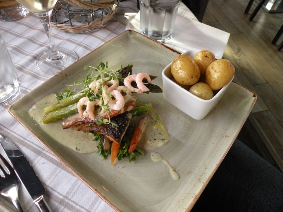 Vi blev visade till vårt bord vid fönstret inne på den ombonade och hemtrevliga restaurangen och blev mycket väl omhändertagna av en snäll, ödmjuk och omtänksam servitör och vi kände oss genast VIP-ade.