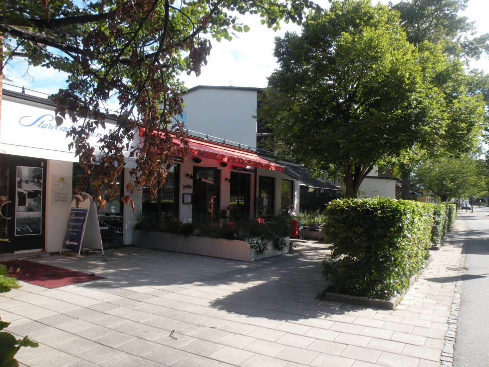 Jag hade sett på kartan att det låg en bit utanför Stockholms City så vi tog tunnelbanan till Mörby Centrum och sen buss vidare till Djursholm. Vi hade ingen koll på var vi skulle stiga av så vi fick gå en bra bit men vi var ute i god tid, solen sken och vi var förväntansfulla så det var bara mysigt. När vi kom fram till Djursholms centrum så var det lätt att hitta Yolo