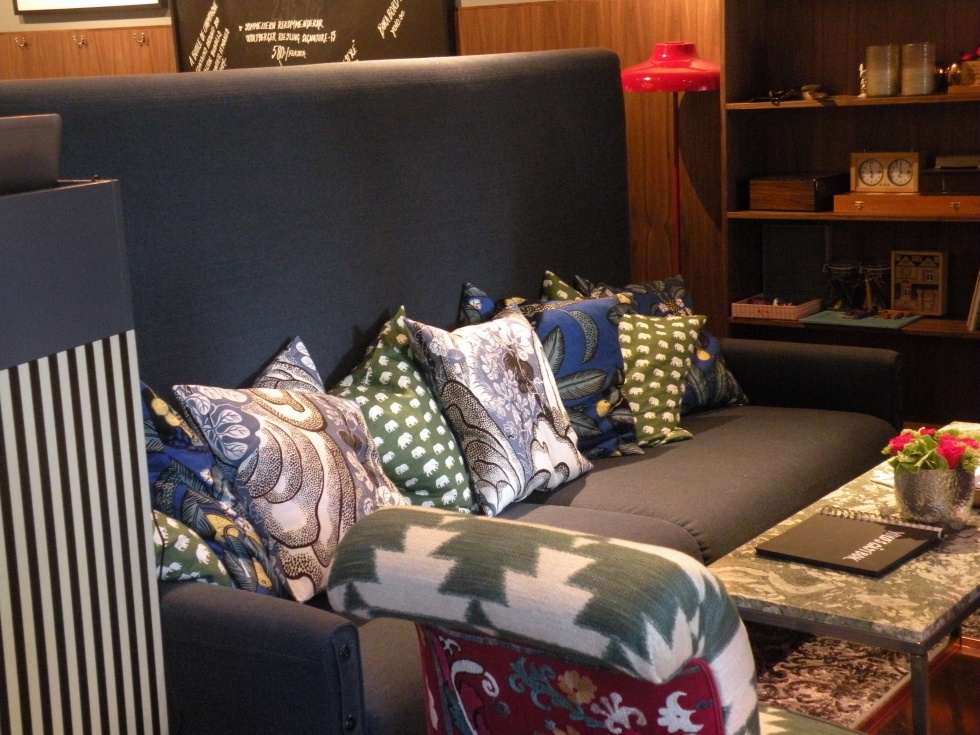 Här kan man mysa och småprata eller dryfta allvarliga ting bland kuddarna i soffan. Hemtrevligt!