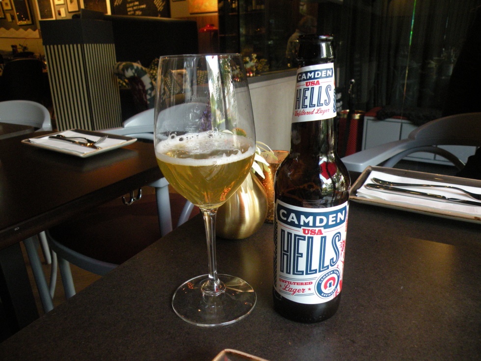 Vi beställde in något att dricka. Jag visste inget om de olika ölsorterna på menyn så jag bad vår servitör att ta in en öl som skulle passa till förrätterna och både han och Henrik föreslog ett underjäst öl, Camden Hells Lager. Lite roligt är också att Yolo kommer att ha en egen öl, jag tror den heter Yolo Lager,men den var inte inkommen ännu så den får vi avsmaka nästa gång vi besöker Yolo.