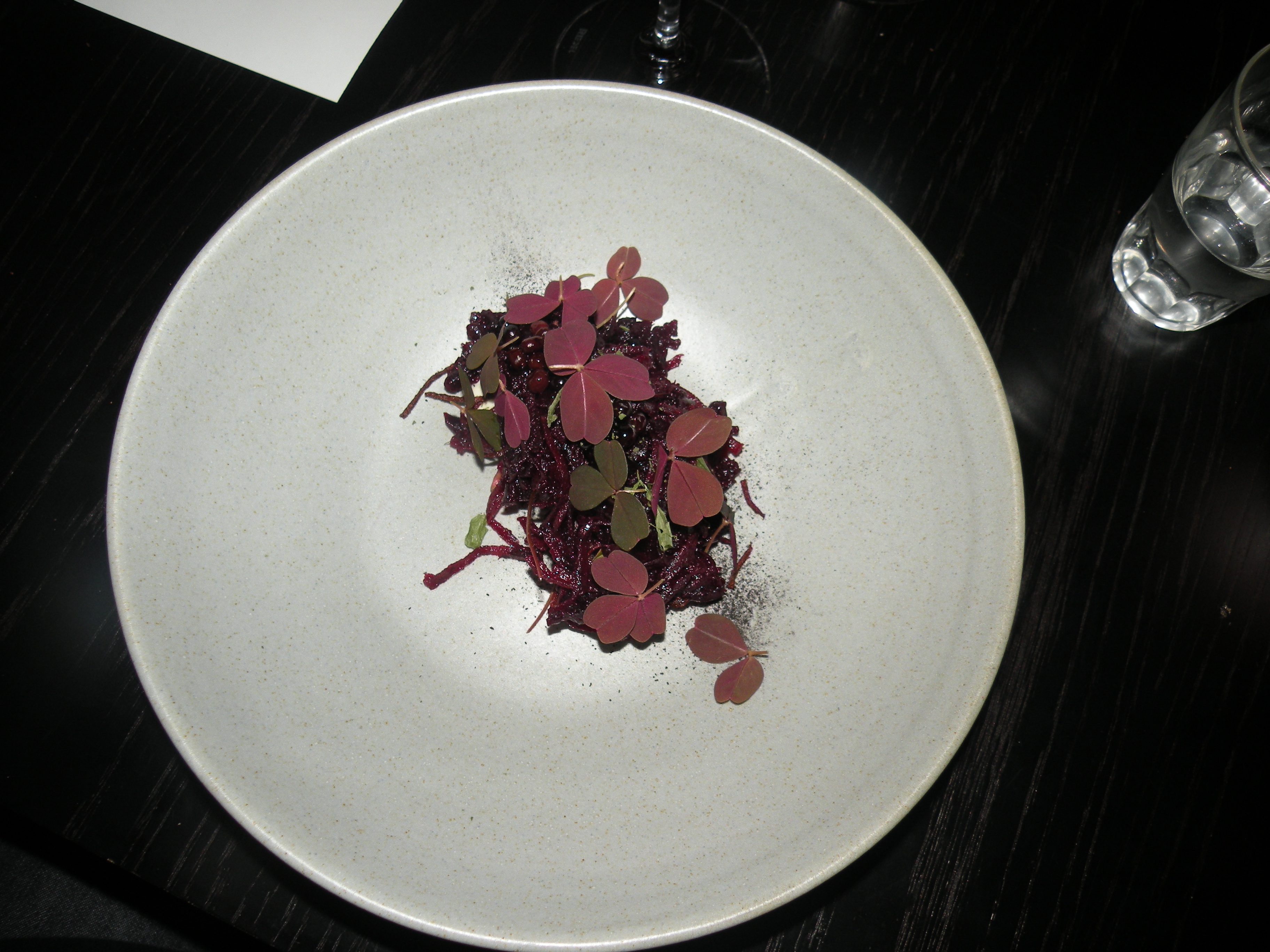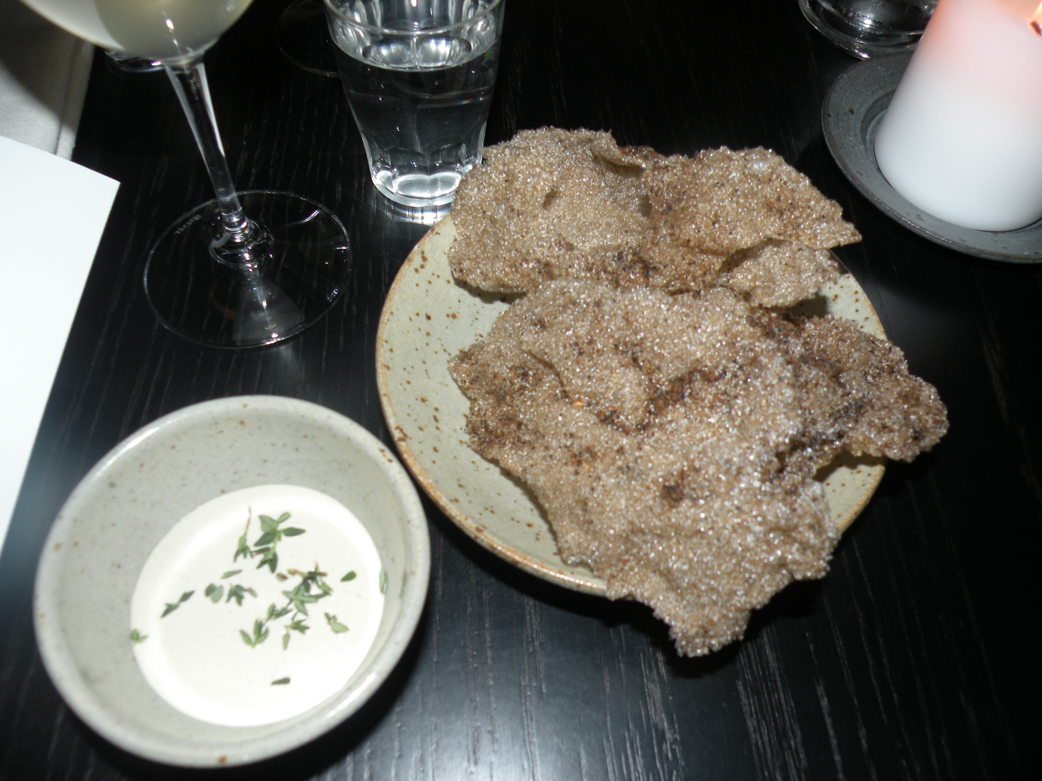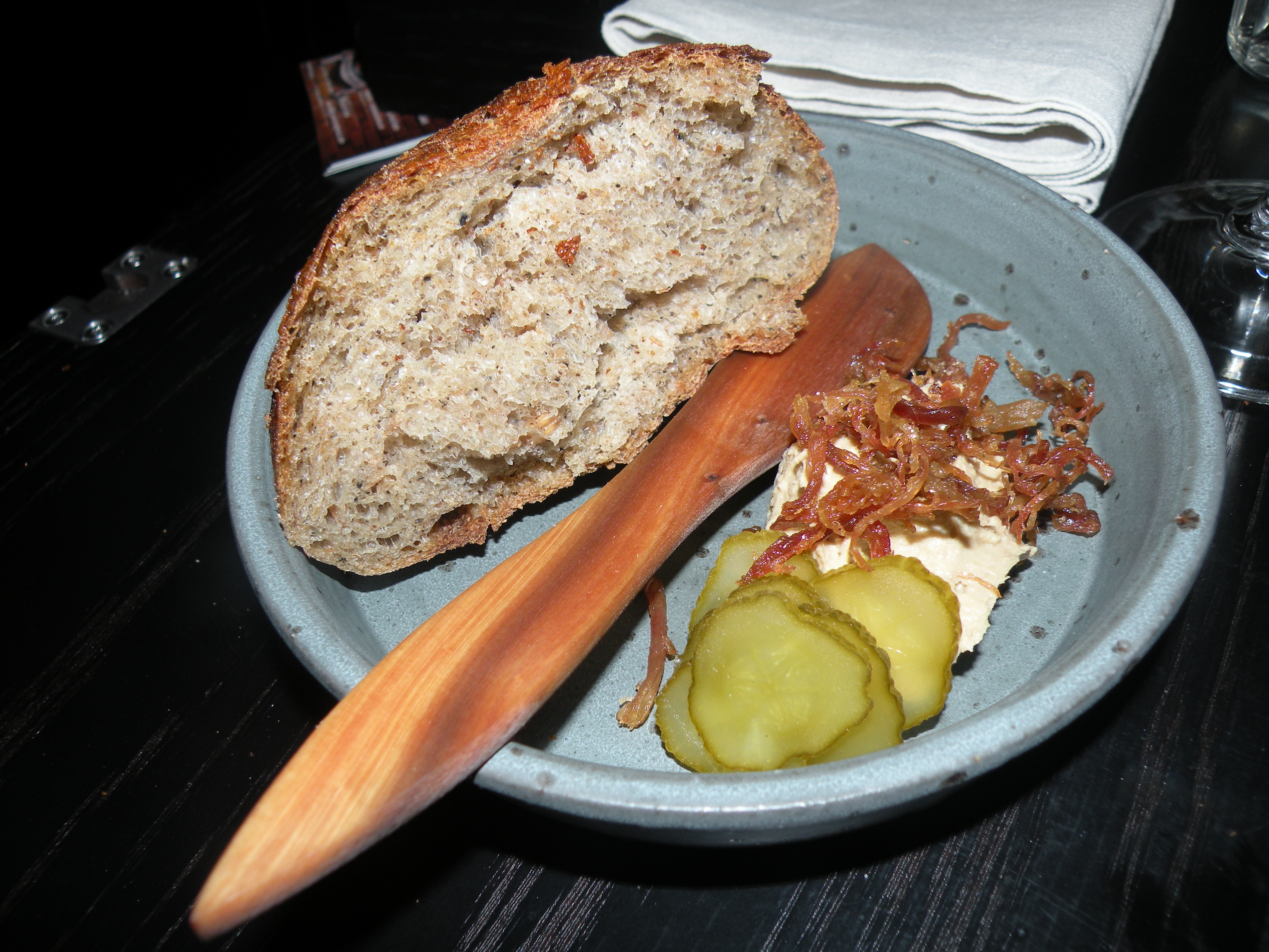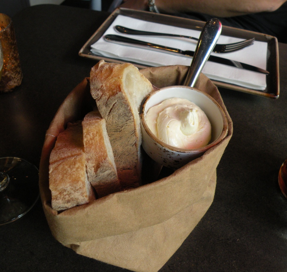 Sen fick vi in ett gott bröd med ett vispat, sammetslent smör smaksatt med citron och pepparrot. Pepparroten var inte så framträdande och det var inte meningen heller sa vår servitör, eftersom många kanske är obekväma med för stark smak av pepparrot.
