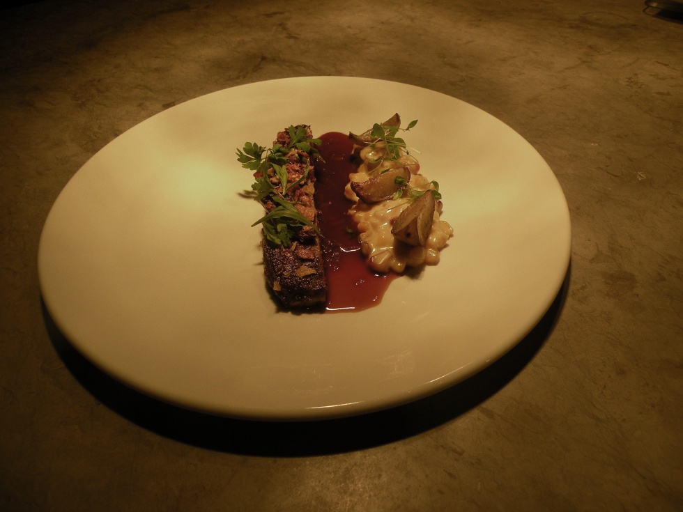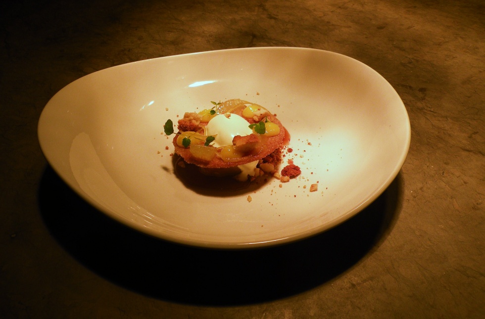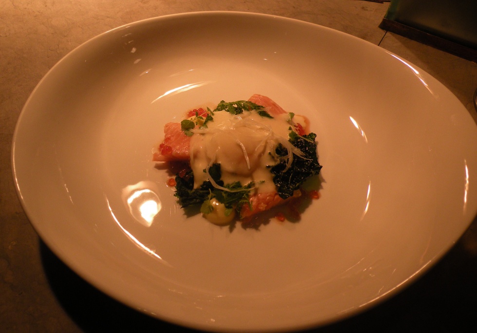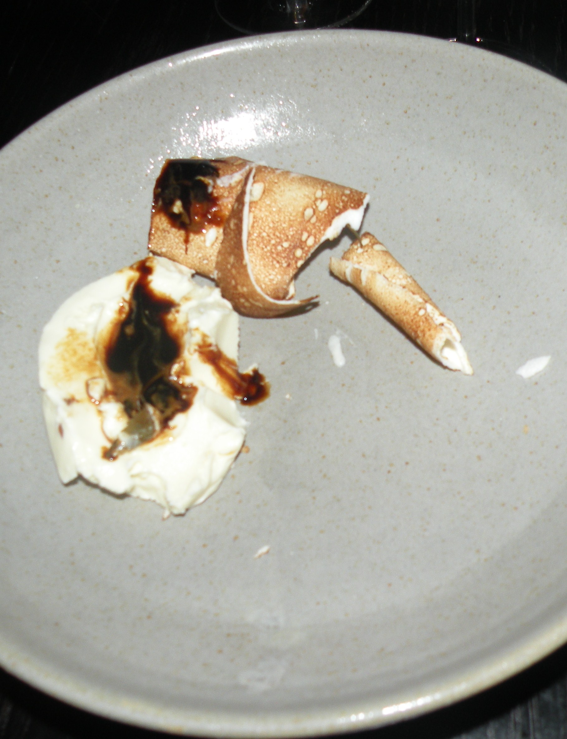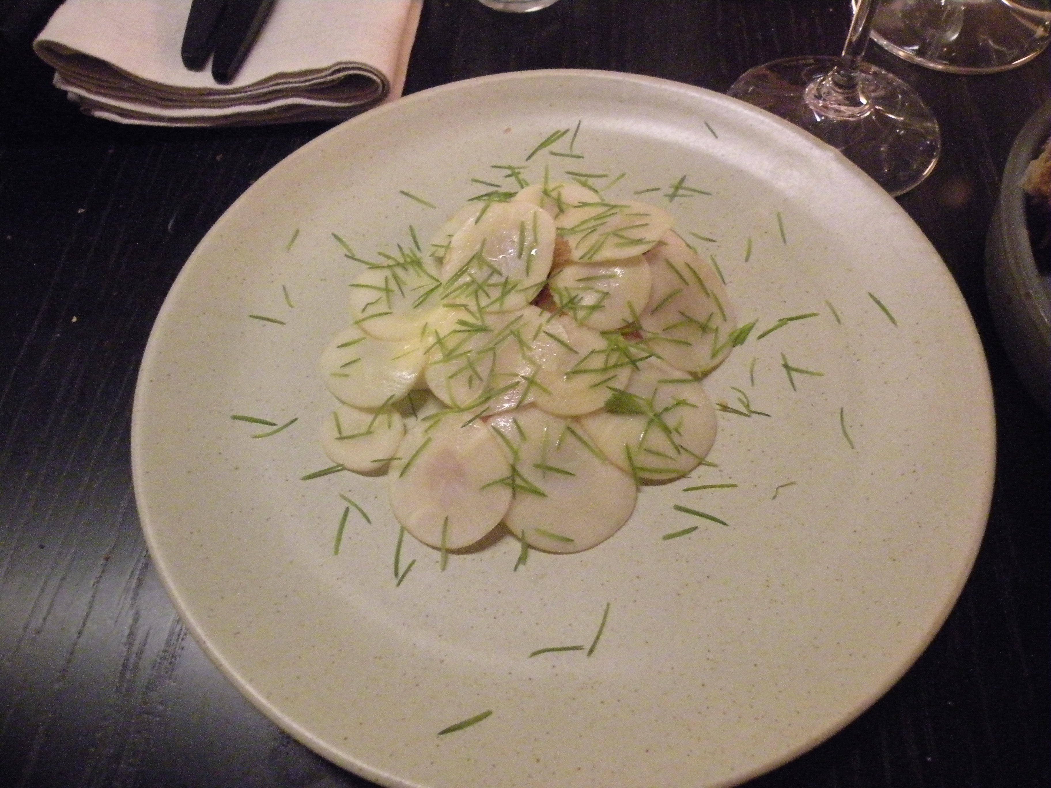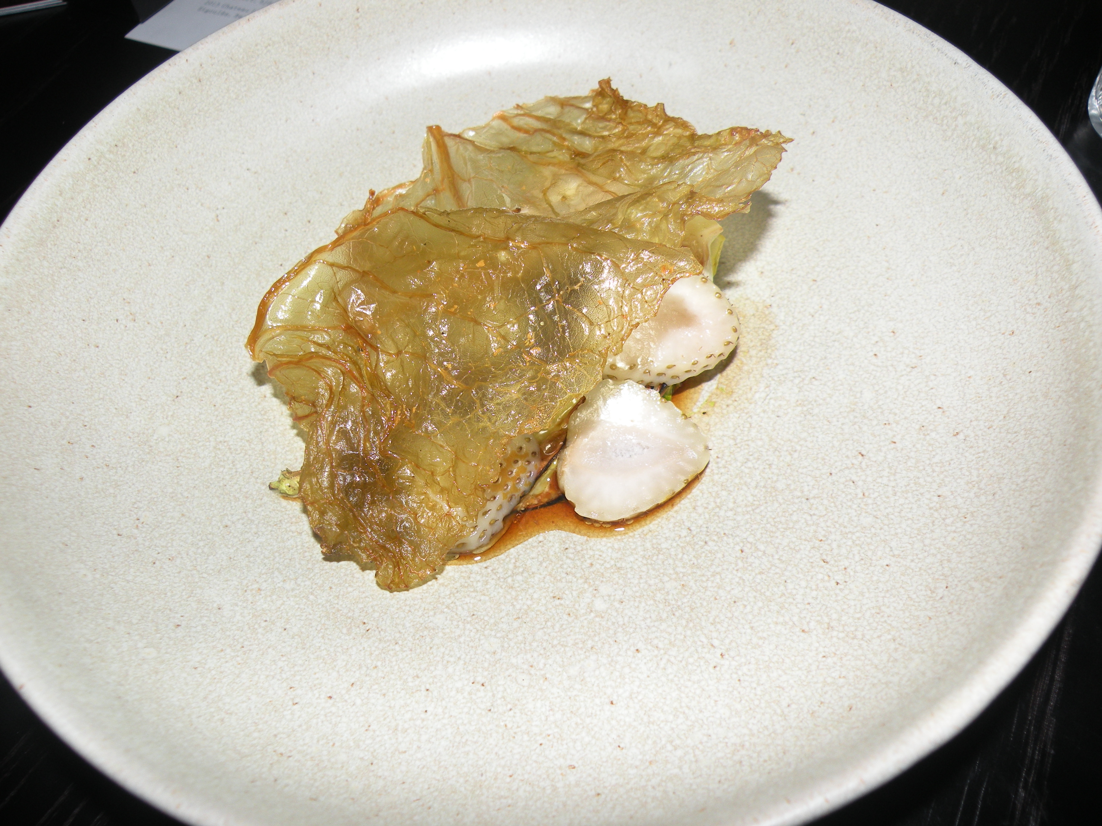 Sen fick vi in ett gott bröd med ett vispat, sammetslent smör smaksatt med citron och pepparrot. Pepparroten var inte så framträdande och det var inte meningen heller sa vår servitör, eftersom många kanske är obekväma med för stark smak av pepparrot.