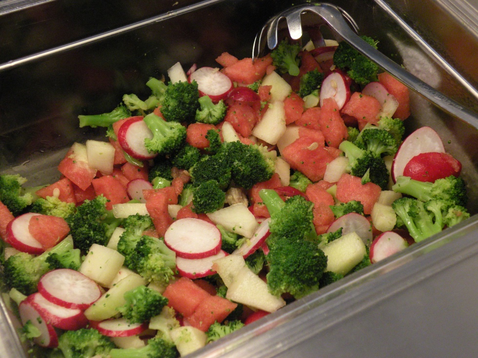 På vår salladsbuffé hade vi bland annat en sallad med broccoli, melon och rädisor och det är läskande en het dag sommardag som denna.