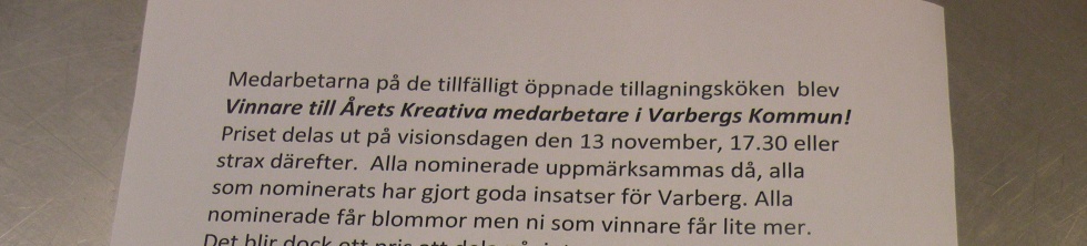 För ett tag sen blev vi nominerade till årets kreativa medarbetare i Varbergs kommun!