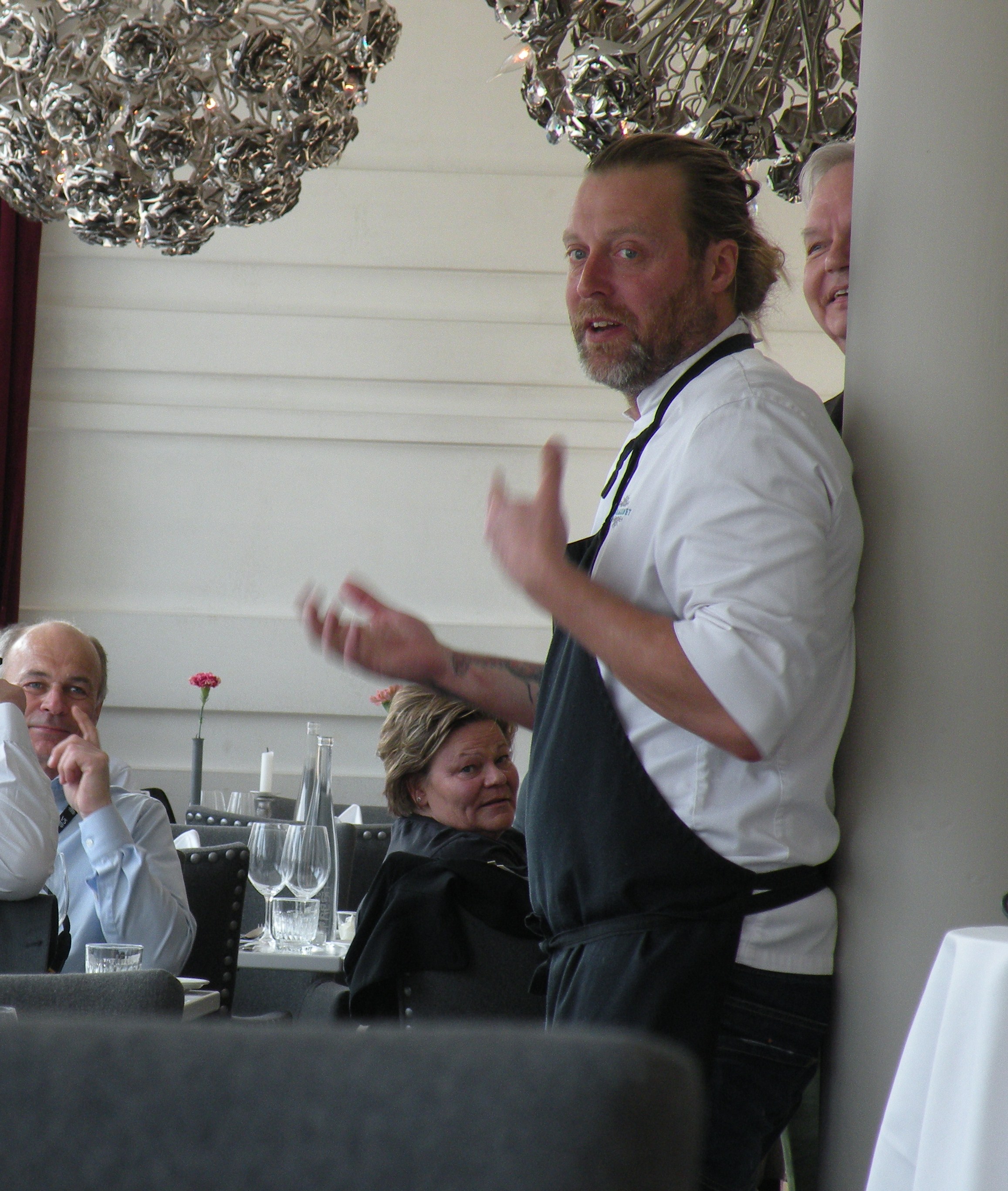 Samtidigt som en trevlig och rolig Mat- och Dryckmässa pågick i Spegelsalen på Varbergs Stadshotell 11 april 2015 så hade vi fått ett erbjudande om att boka en tre-rätters gourmetlunch av Gustav Trägårdh från Sjömagasinet i Göteborg. Gustav vann tävlingen Årets Kock 2010 och TV-tävlingen Kockarnas Kamp 2014.