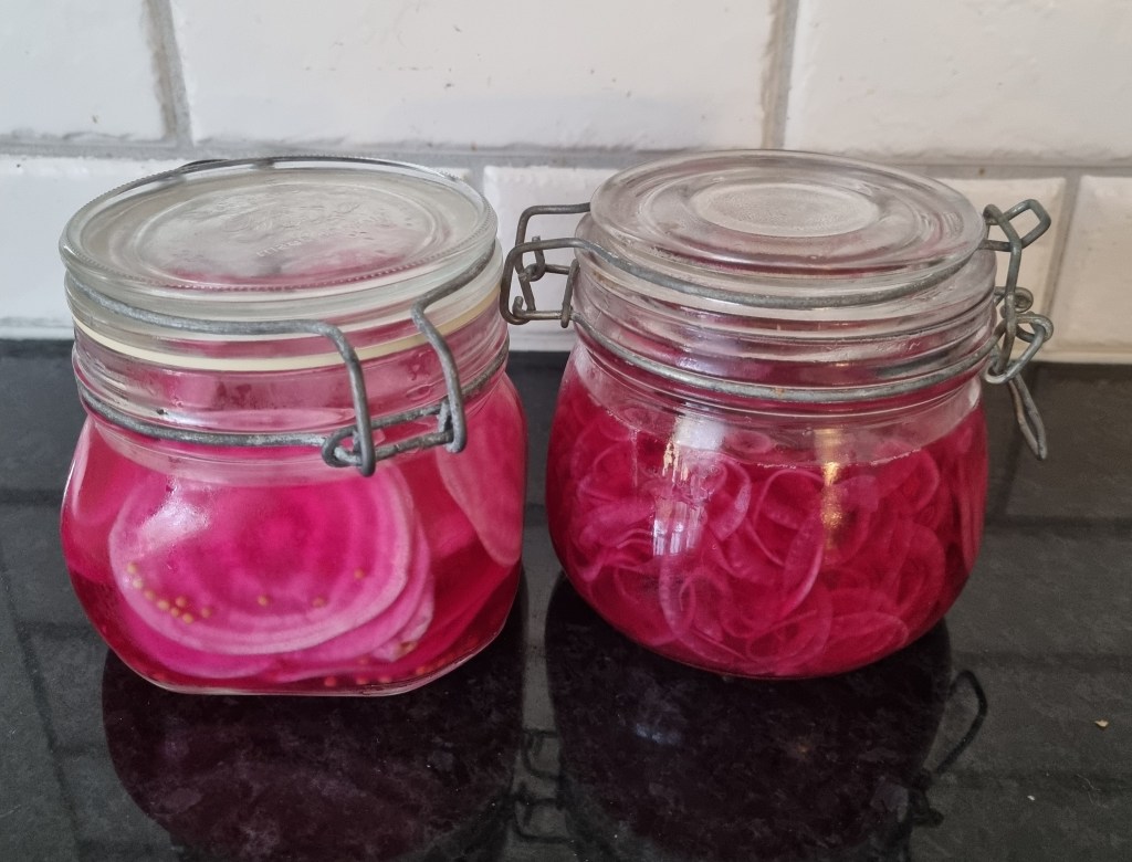Vad gäller hantering av mandolin så se till att använda hållare till betorna, löken eller vad du än ska pickla så att inte fingertopparna åker med i anrättningen för det är lätt hänt.